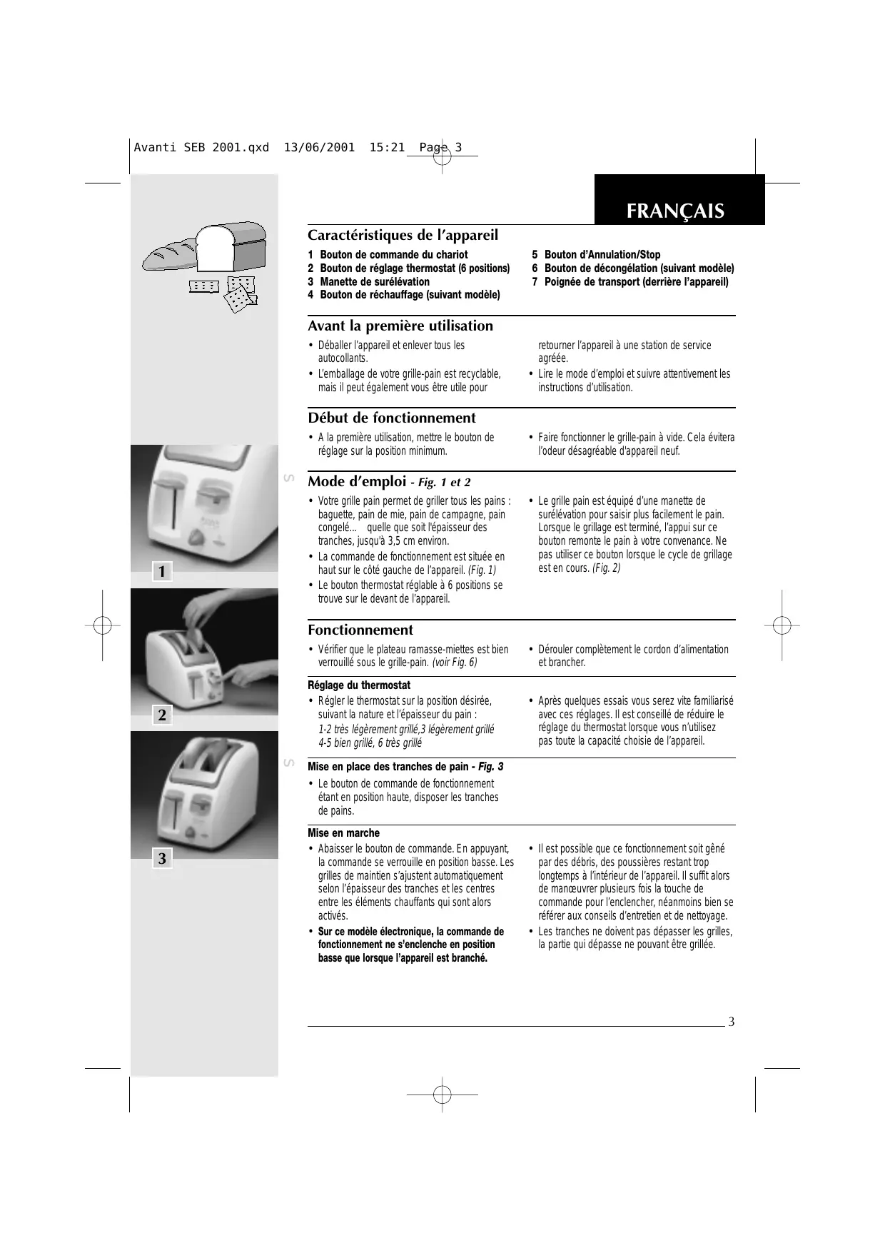 4-5-6 Avanti SEB 2001.qxd 13/06/2001 15:21 Page 3 FRANÇAIS Caractéristiques de l’appareil