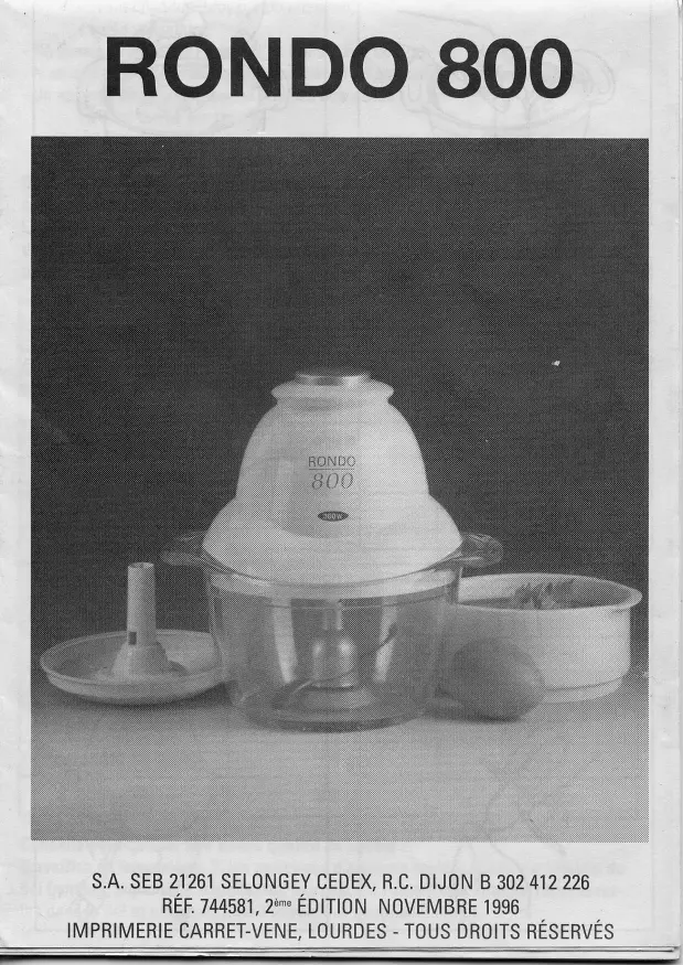 RONDO 800 - Robot de cuisine SEB - Notice d'utilisation et mode d'emploi gratuit
