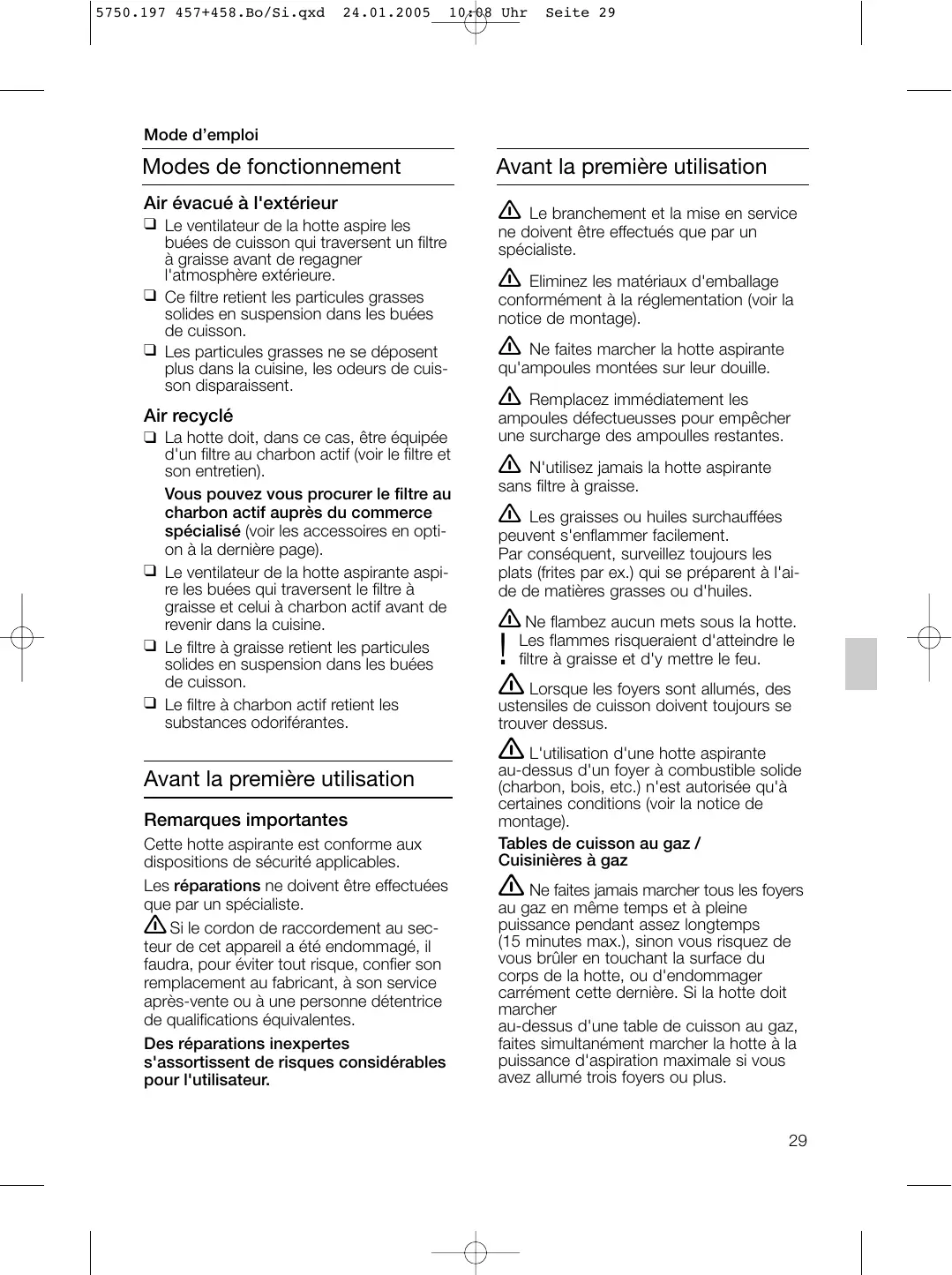 ❑ Voir les instructions relatives au filtre à graisse. 5750.197 457+458.Bo/Si.qxd