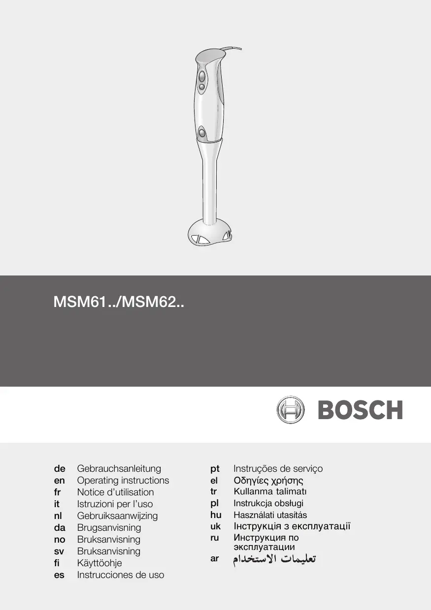 MSM6150, MSM6250, MSM64120, MSM66110, MSM66120, MSM6700, MSM67160 - Mixeurs plongeants BOSCH - Notice d'utilisation et mode d'emploi gratuit