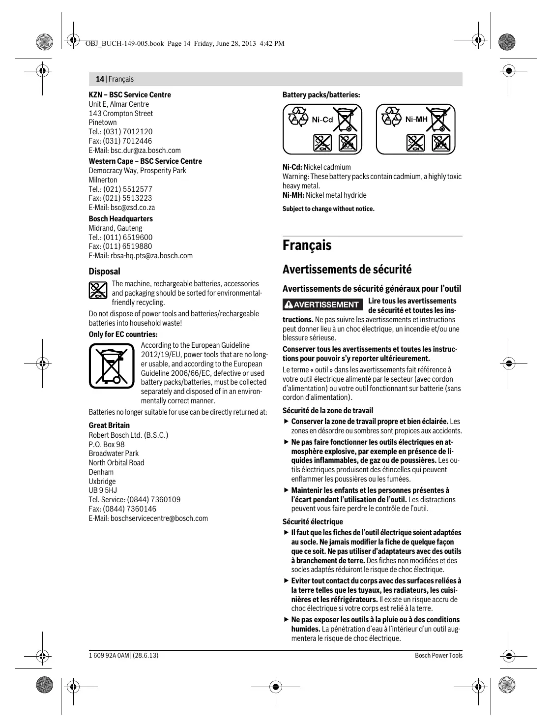 MODE D'EMPLOI PSR 14.4V BOSCH