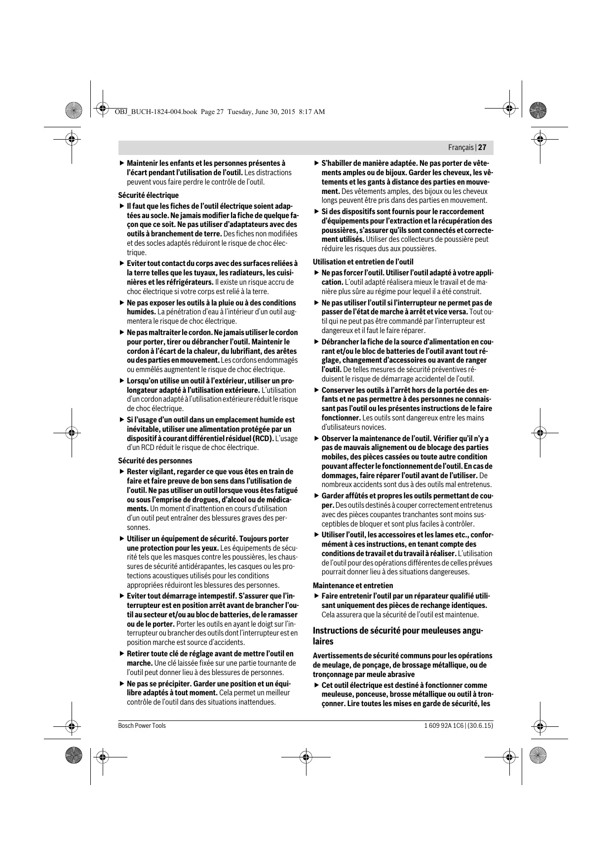 Instructions de sécurité pour meuleuses angulaires