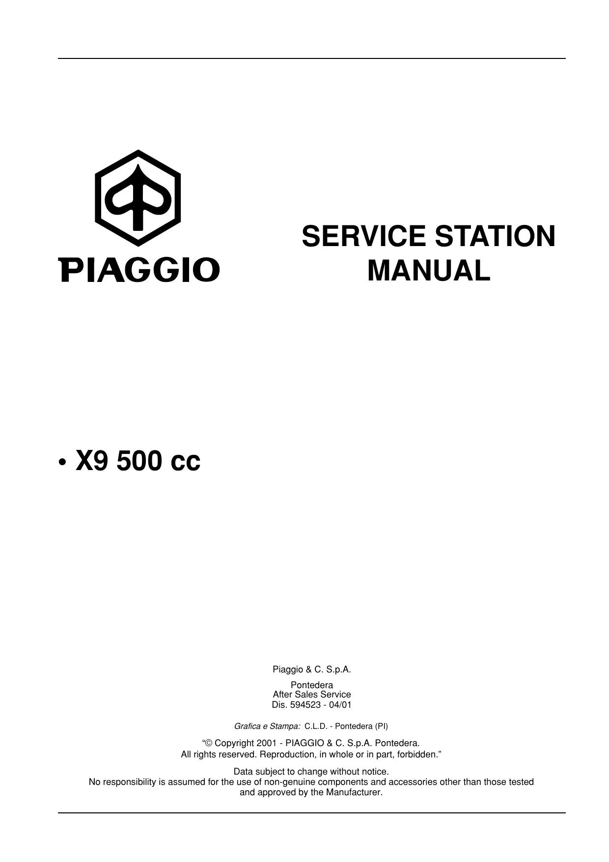 Téléchargez la notice de votre Scooter au format PDF gratuitement ! Retrouvez votre notice X9 500 - PIAGGIO et reprennez votre appareil électronique en main. Sur cette page sont publiés tous les documents nécessaires à l'utilisation de votre appareil X9 500 de la marque PIAGGIO.