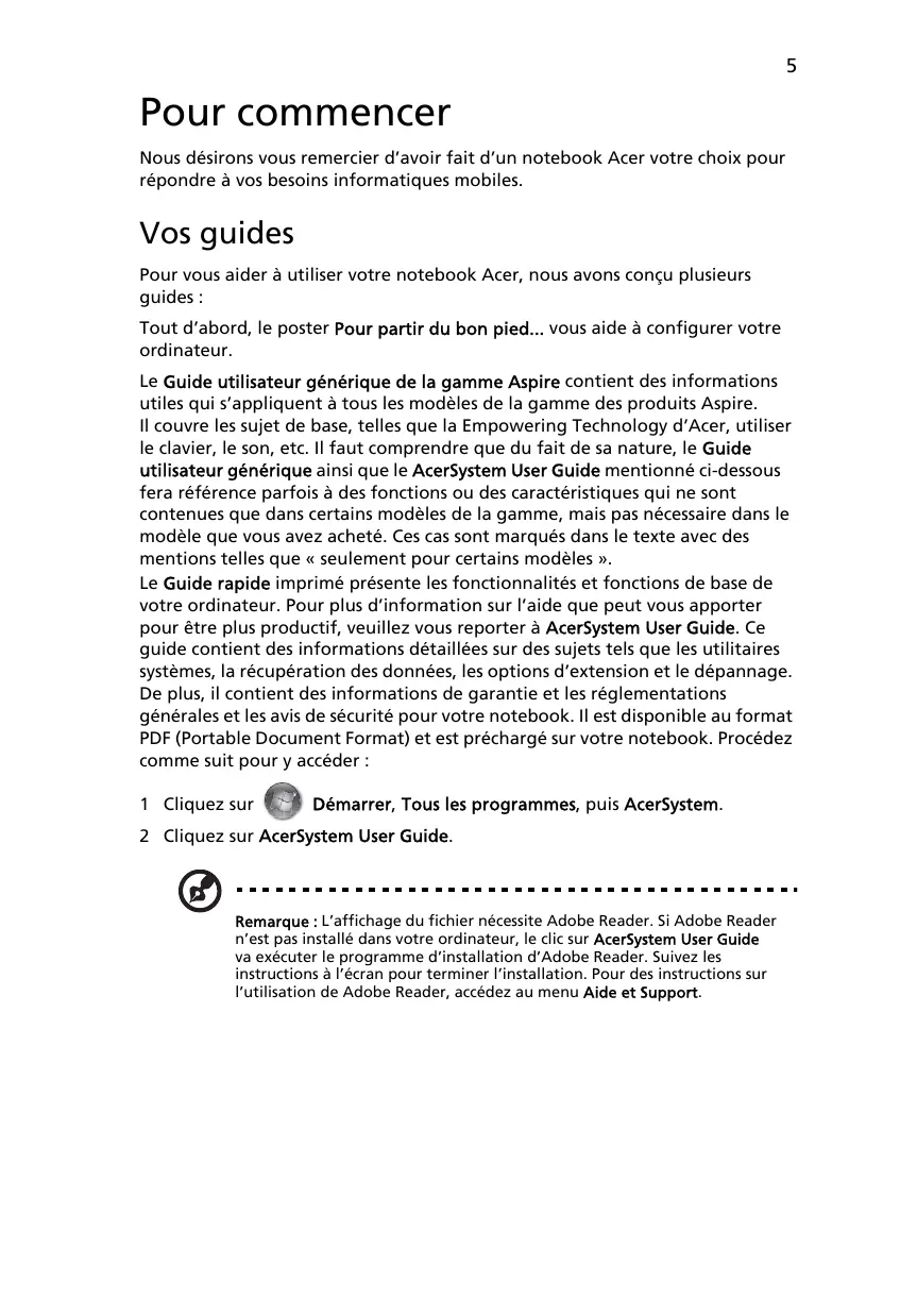 Téléchargez la notice de votre Ordinateur portable au format PDF gratuitement ! Retrouvez votre notice ASPIRE 7530 - ACER et reprennez votre appareil électronique en main. Sur cette page sont publiés tous les documents nécessaires à l'utilisation de votre appareil ASPIRE 7530 de la marque ACER.