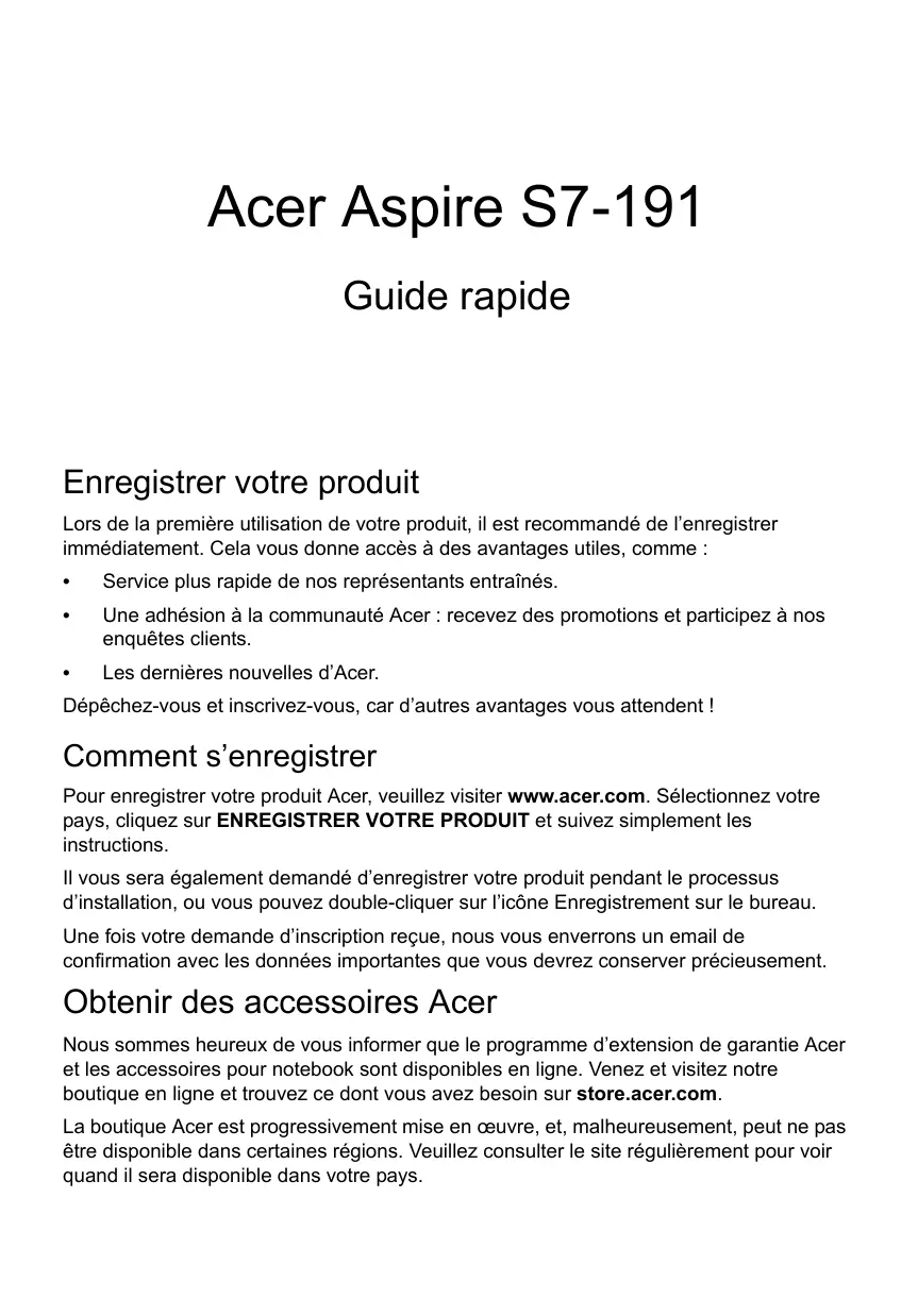 Retrouvez gratuitement la notice de l'appareil ASPIRE S7-191 ACER au format PDF.