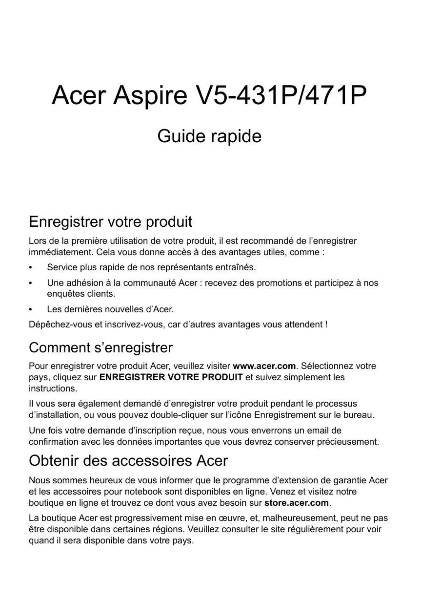 ASPIRE V5-431P - Ordinateur portable ACER - Notice d'utilisation et mode d'emploi gratuit