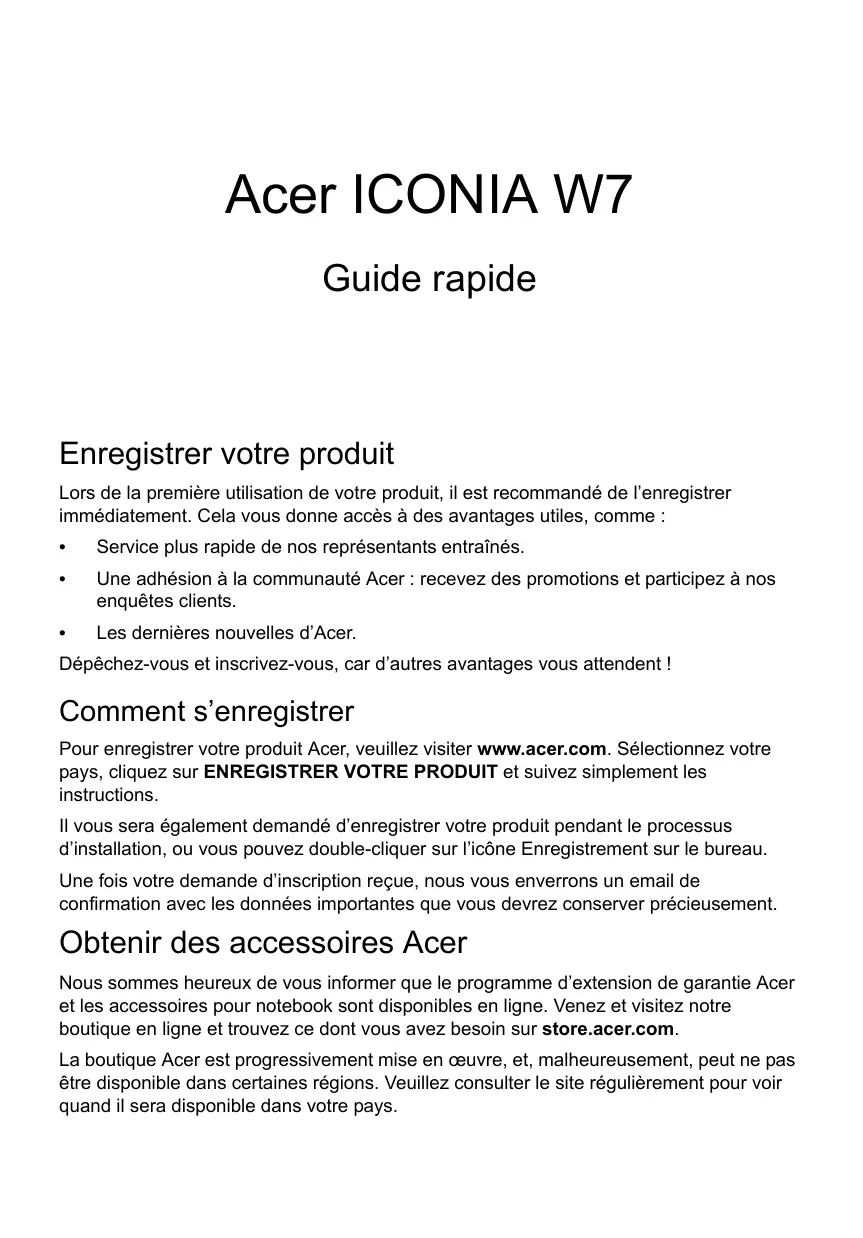 W701 - Tablette convertible ACER - Notice d'utilisation et mode d'emploi gratuit