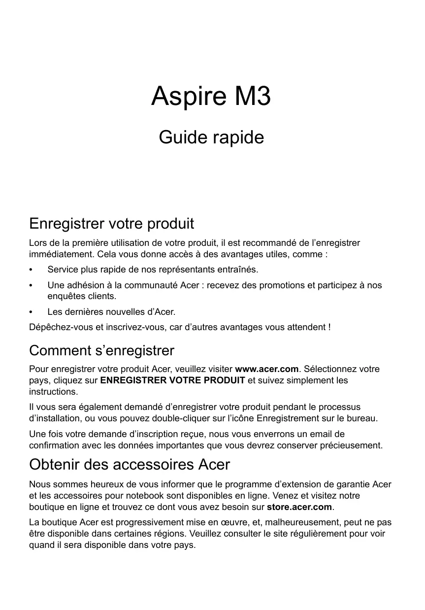 Retrouvez gratuitement la notice de l'appareil ASPIRE M3-580G ACER au format PDF.