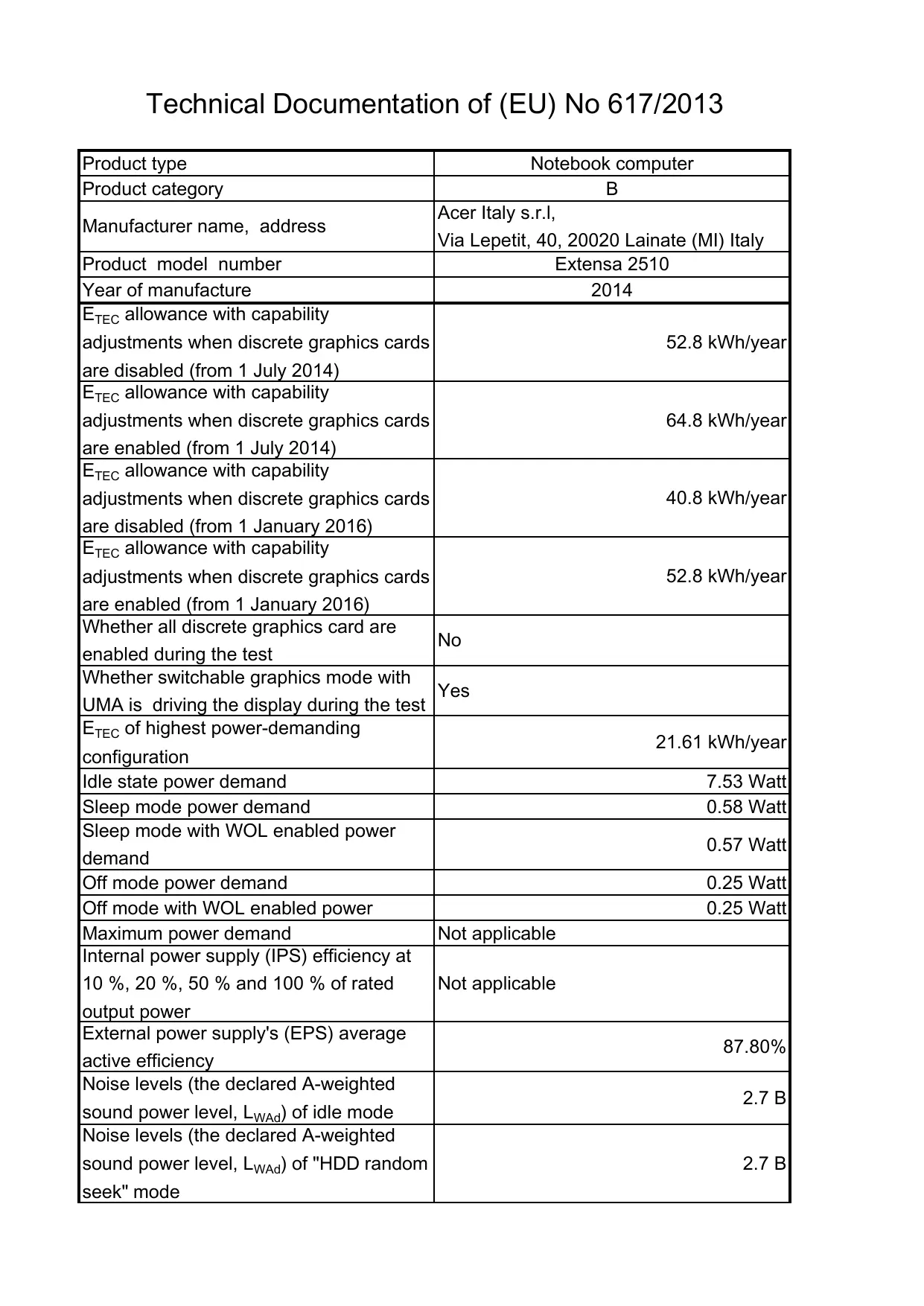 | Type de produit | Ordinateur portable ACER EXTENSA 2510G |