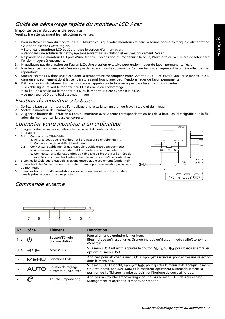 Téléchargez la notice de votre Moniteur au format PDF gratuitement ! Retrouvez votre notice K192WL - ACER et reprennez votre appareil électronique en main. Sur cette page sont publiés tous les documents nécessaires à l'utilisation de votre appareil K192WL de la marque ACER.