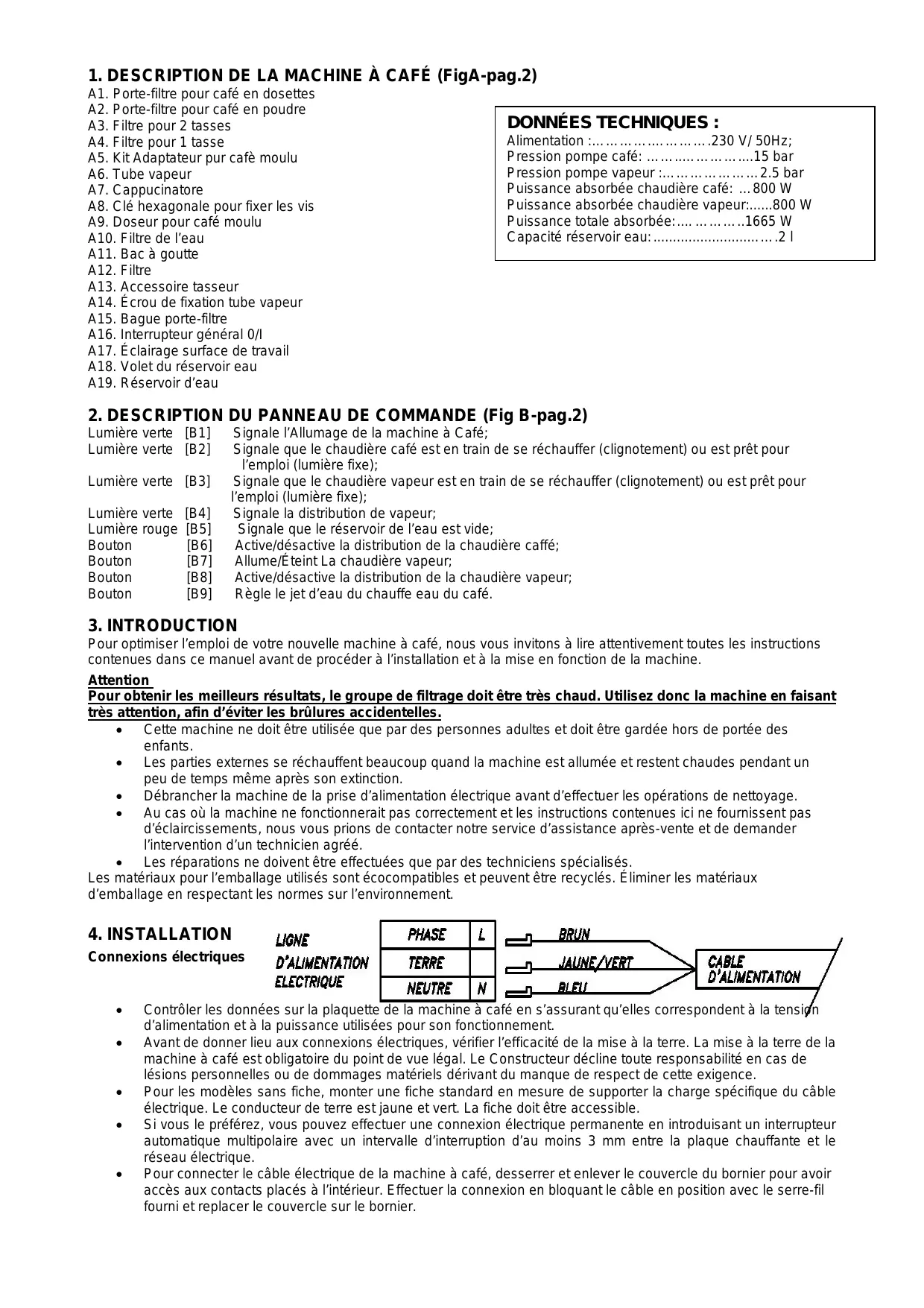 1. DESCRIPTION DE LA MACHINE À CAFÉ (FigA-pag.2)