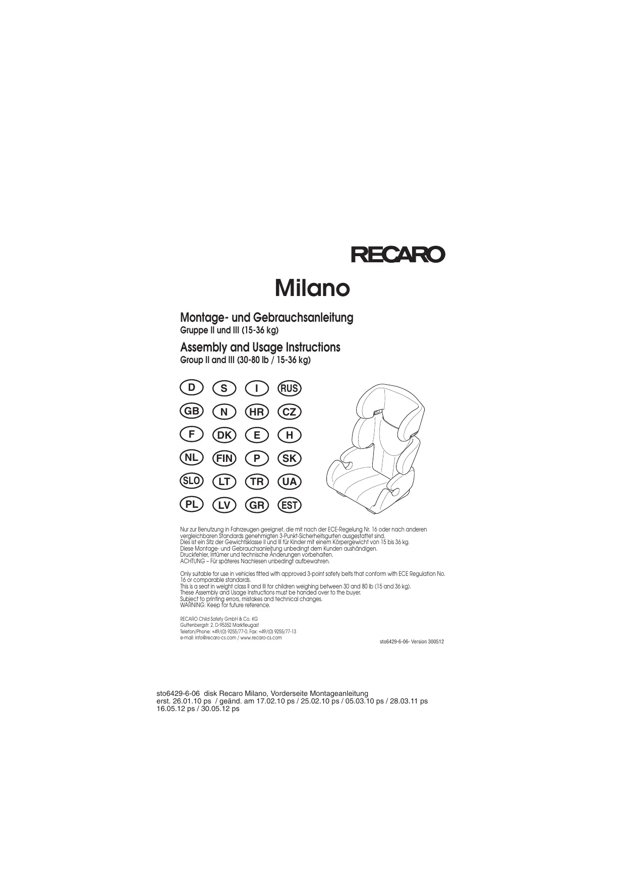 MILANO - Siège automobile RECARO - Notice d'utilisation et mode d'emploi gratuit