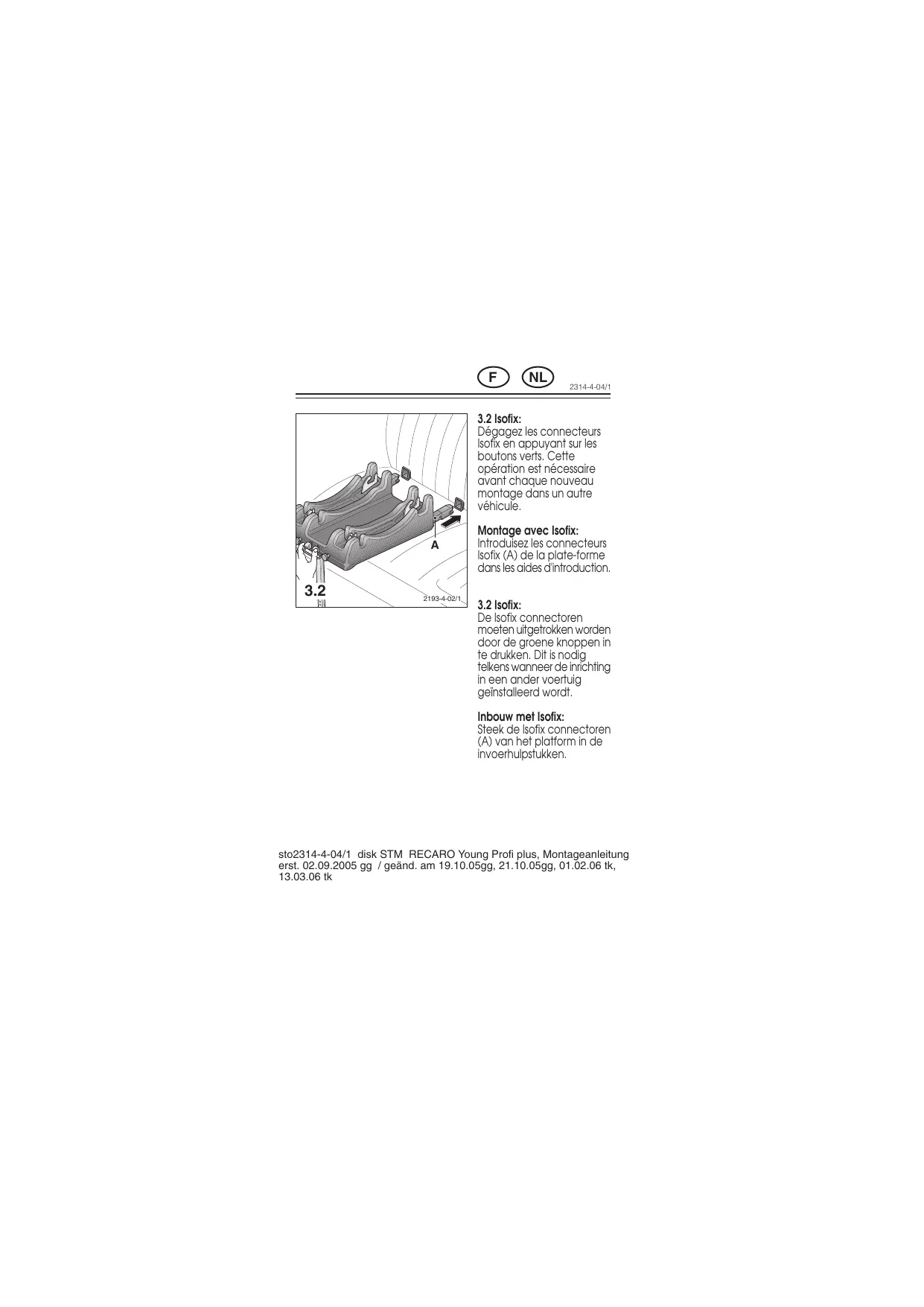 - Fixez le siège pour enfant dans le véhicule de manière à ce qu'il ne soit pas coincé par les sièges avant ou les portes du véhicule. sto2328-4-03/1 disk STM Recaro Young Profi 0+, Hinweis1 F Montageanleitung erst. 02.09.05 gg / geänd. am 08.09.05 tk, 02.02.06 tk, 23.02.06 tk