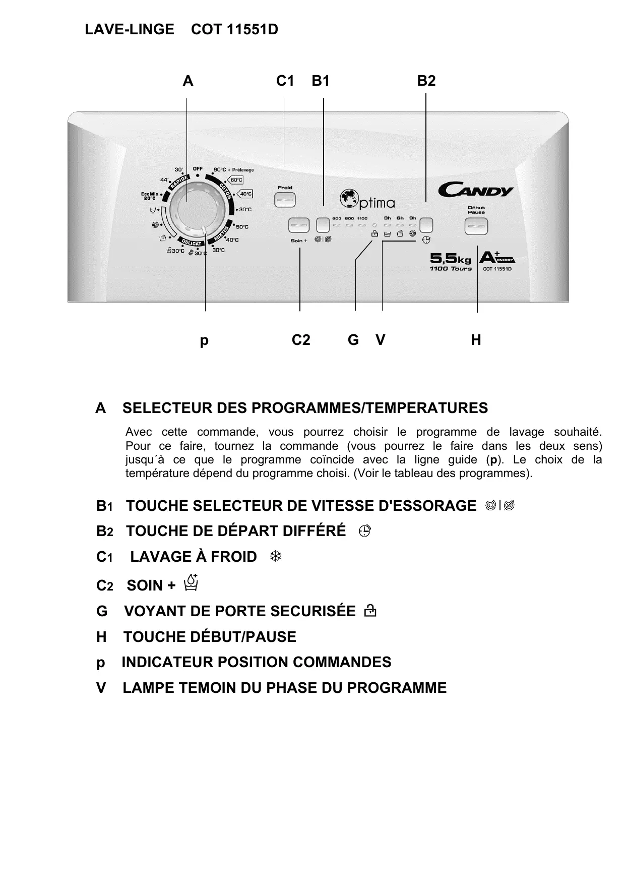 Retrouvez gratuitement la notice de l'appareil COT 11551D-47 CANDY au format PDF.