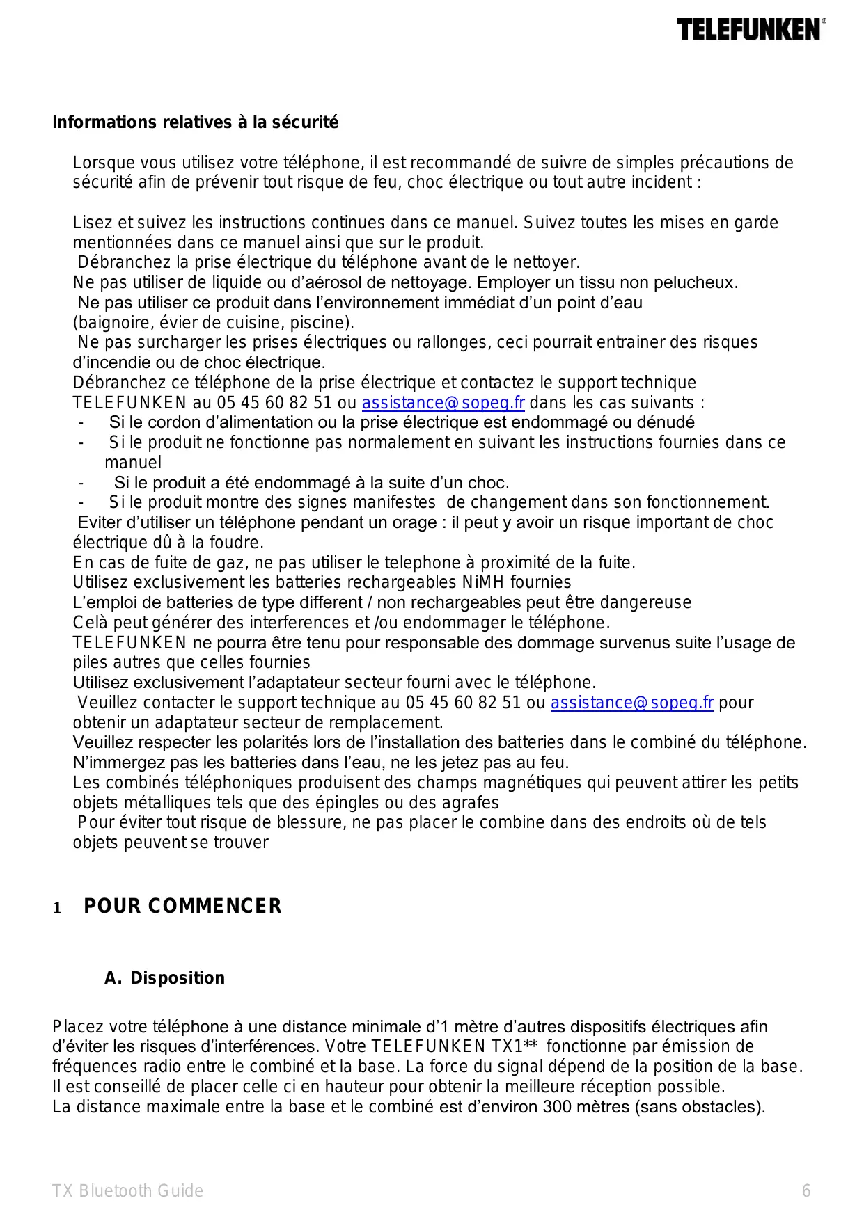 Il est recommendé de placer votre TELEFUNKEN TX 1^** à 1 mètre minimum d'autres équipements électriques afin d'éviter des interférences.