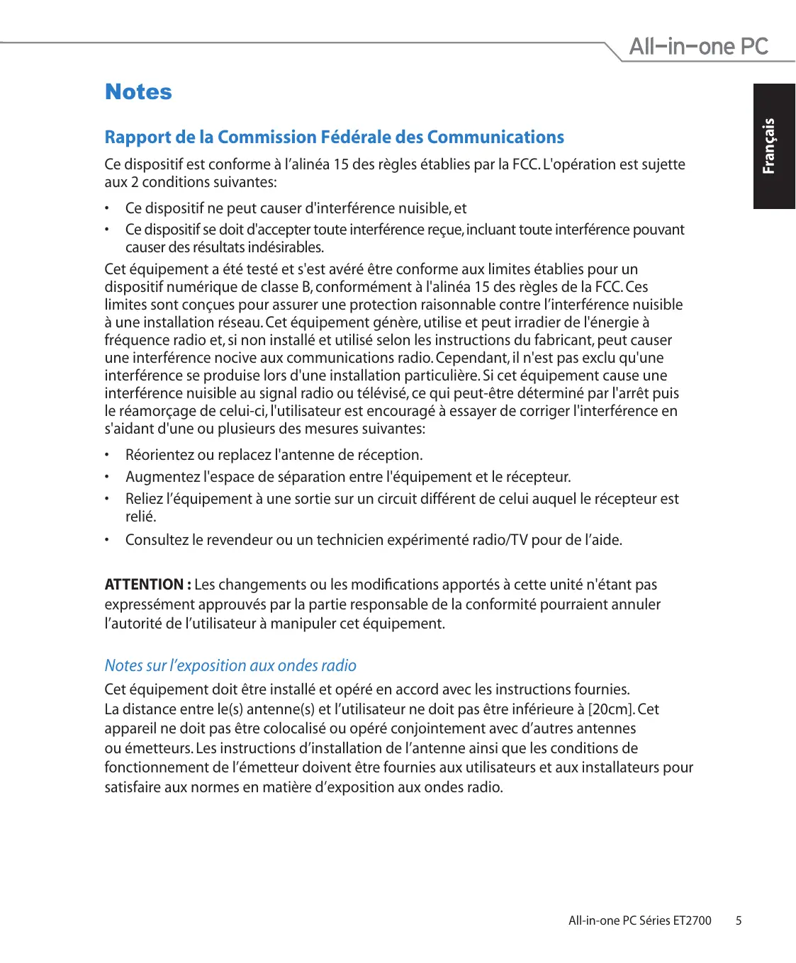 ET2701I - Tout-en-un ASUS - Notice d'utilisation et mode d'emploi gratuit