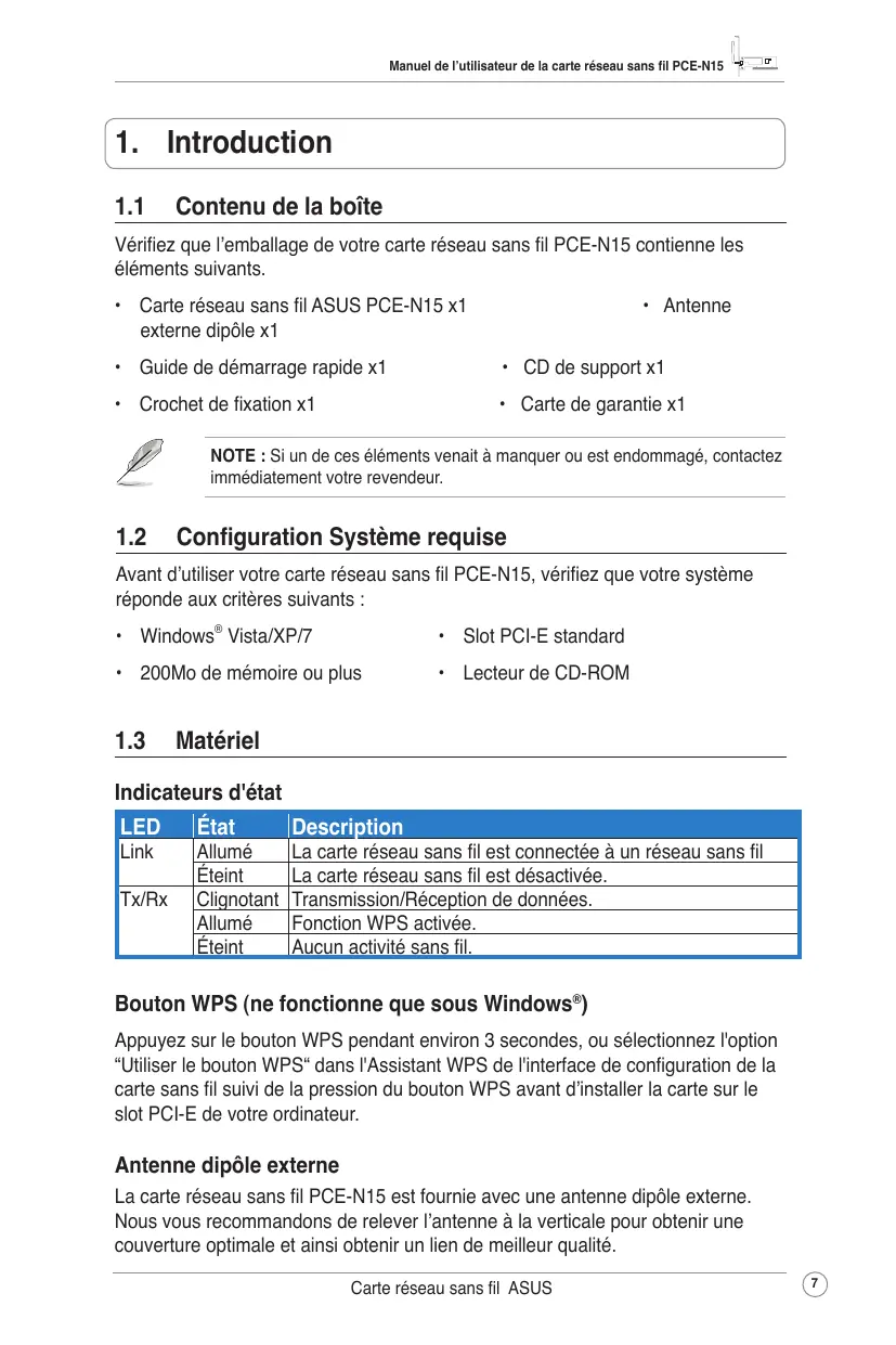 PCE-N15 - Carte réseau ASUS - Notice d'utilisation et mode d'emploi gratuit