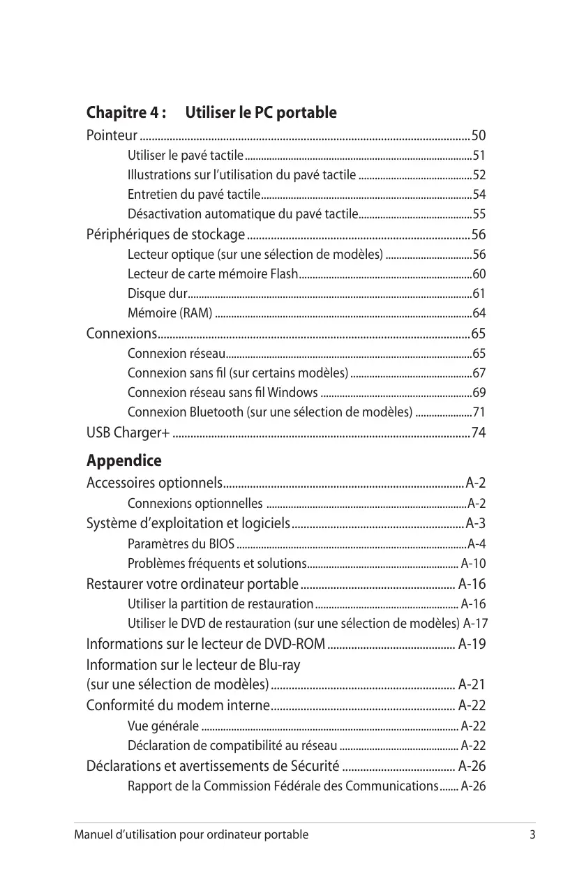 F7051 Manuel d'utilisation pour PC portable Janvier 2012 Table des matières