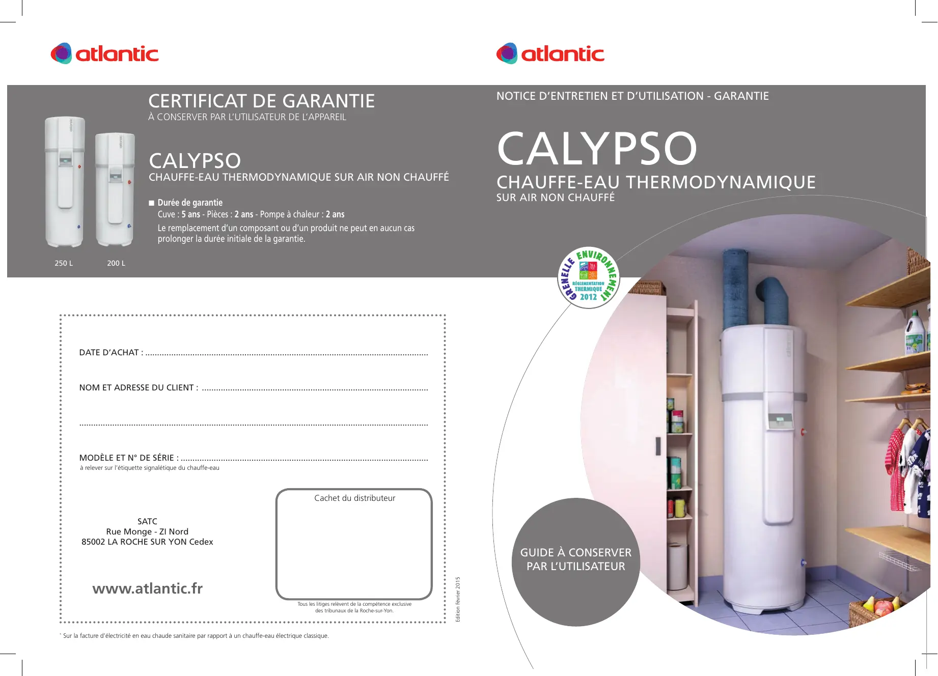 CALYPSO - ATLANTIC - Notice d'utilisation et mode d'emploi gratuit