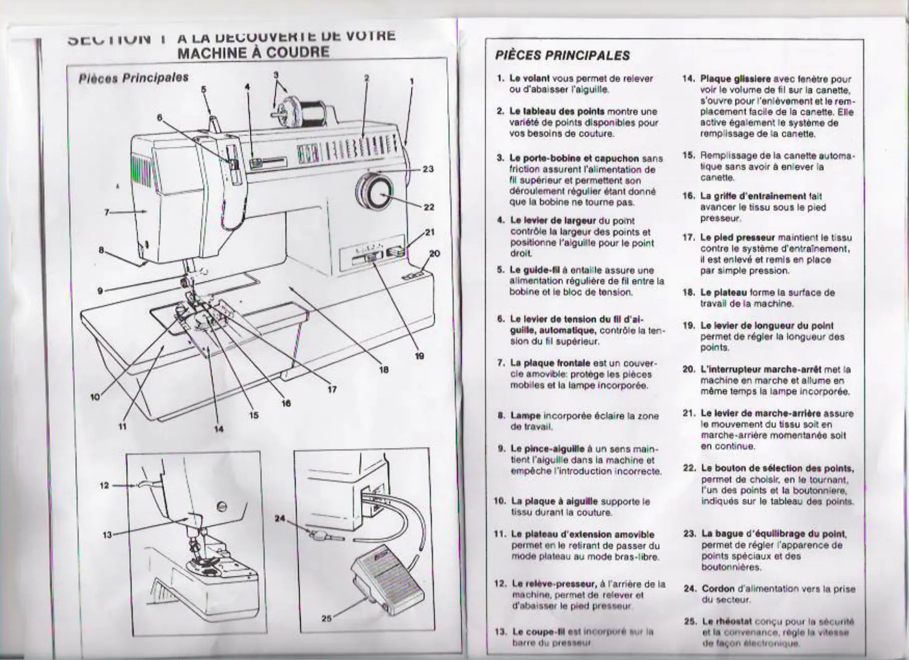 | Caractéristiques techniques principales | 23 points de couture, 1 boutonnière automatique en 1 étape, 6 types de points extensibles |