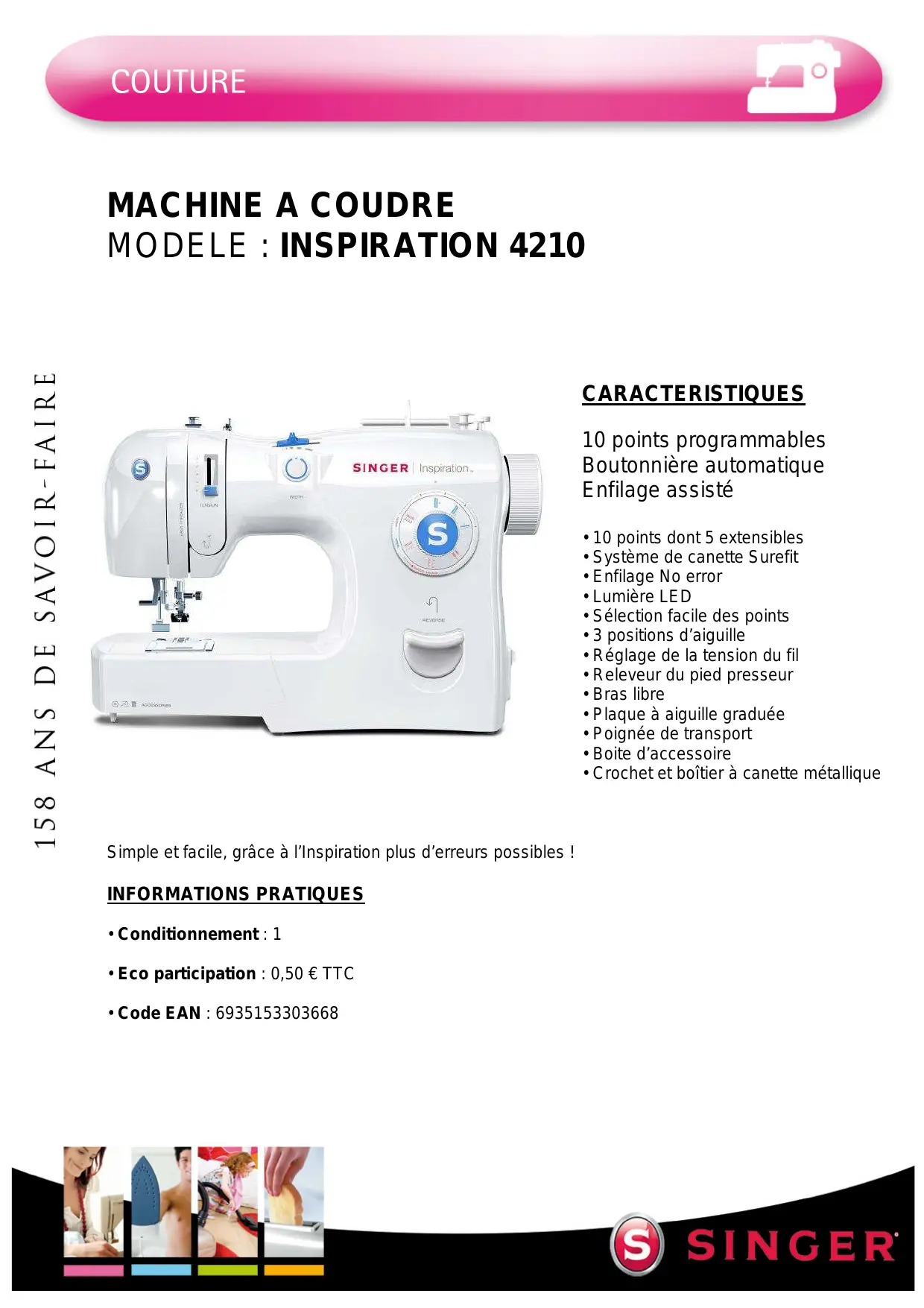 INSPIRATION 4210 - Machine à coudre SINGER - Notice d'utilisation et mode d'emploi gratuit