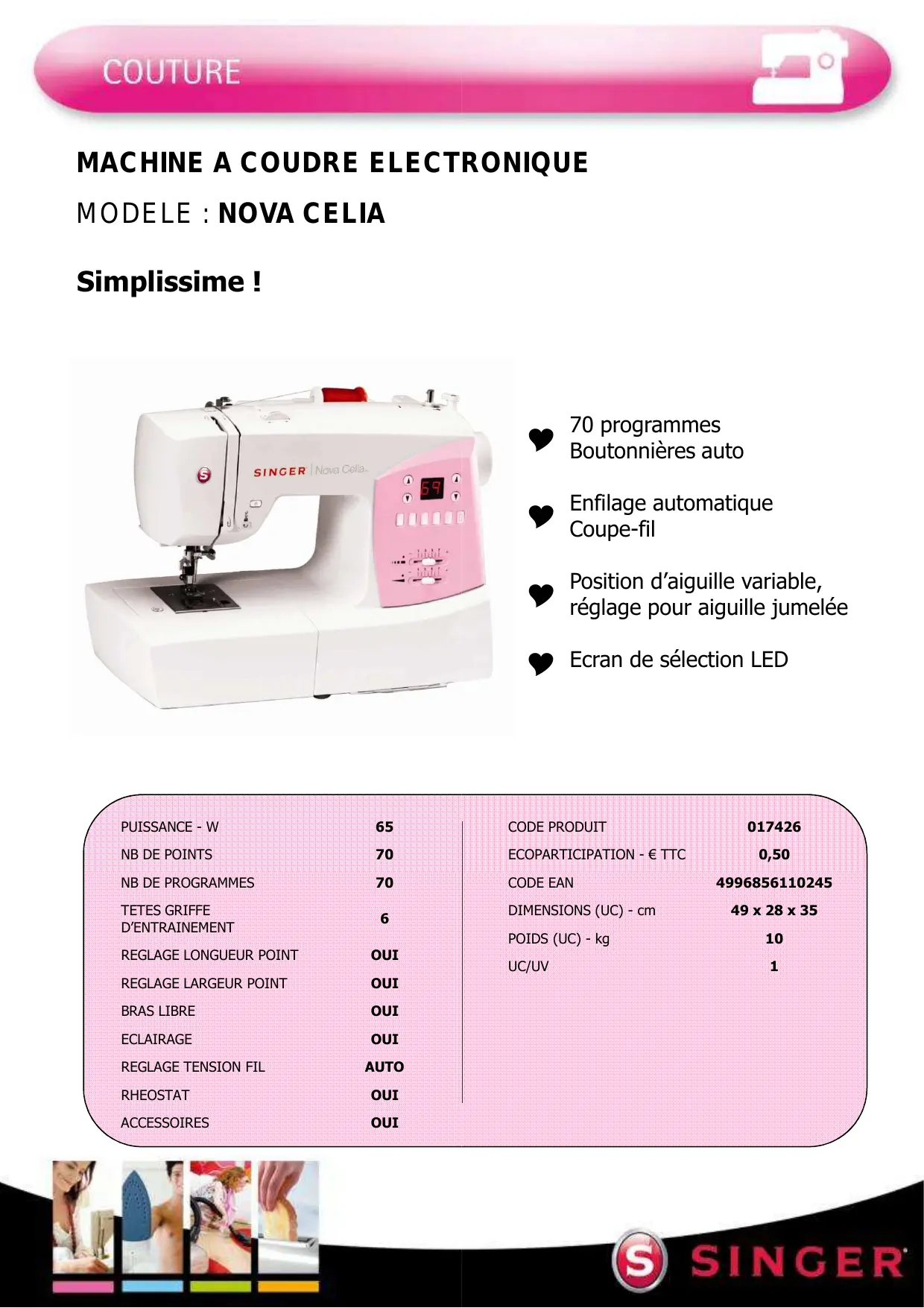 Retrouvez gratuitement la notice de l'appareil NOVA CELIA SINGER au format PDF.