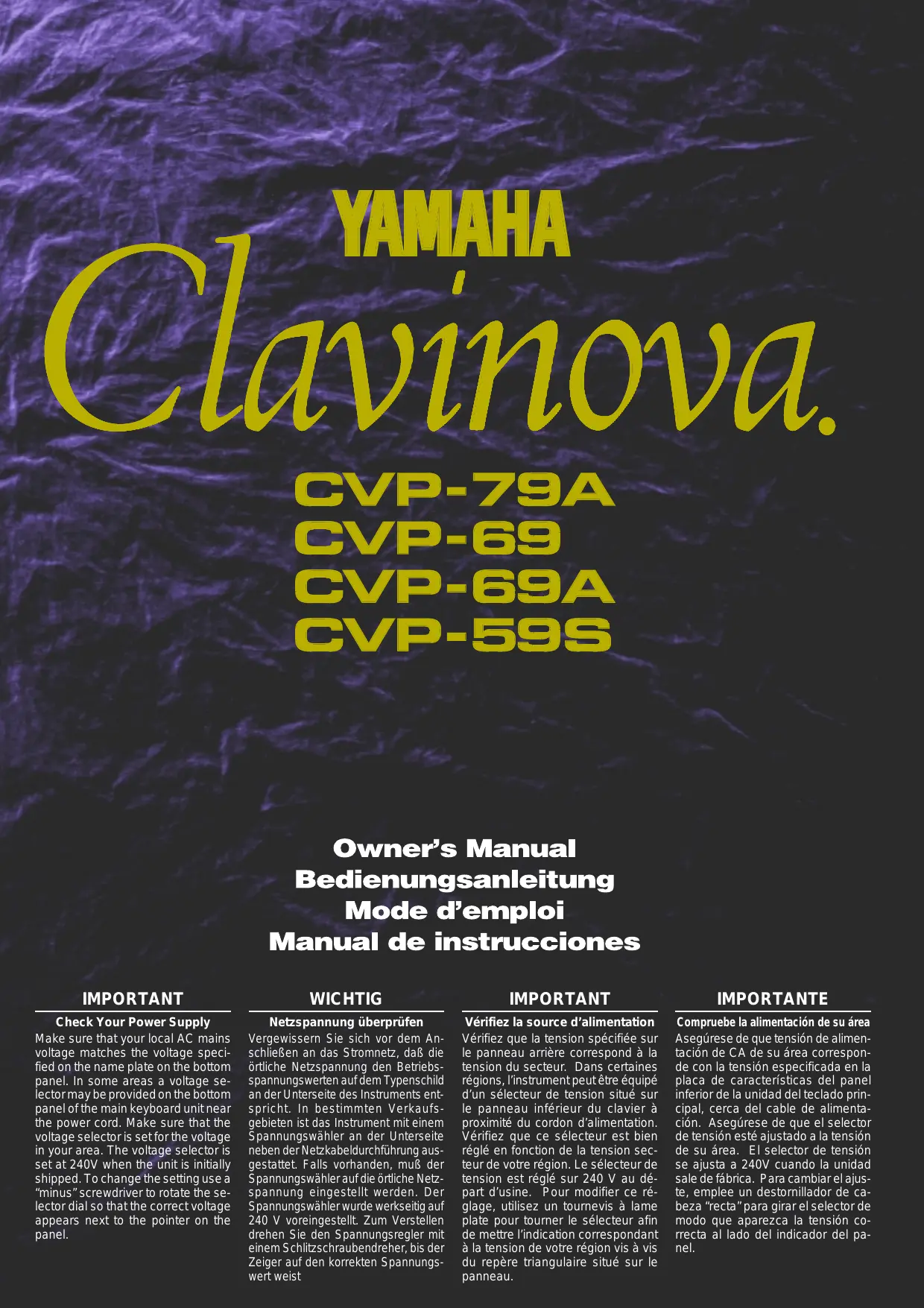 Retrouvez gratuitement la notice de l'appareil CVP-79A-CVP-69-CVP-69A-CVP-59S YAMAHA au format PDF.