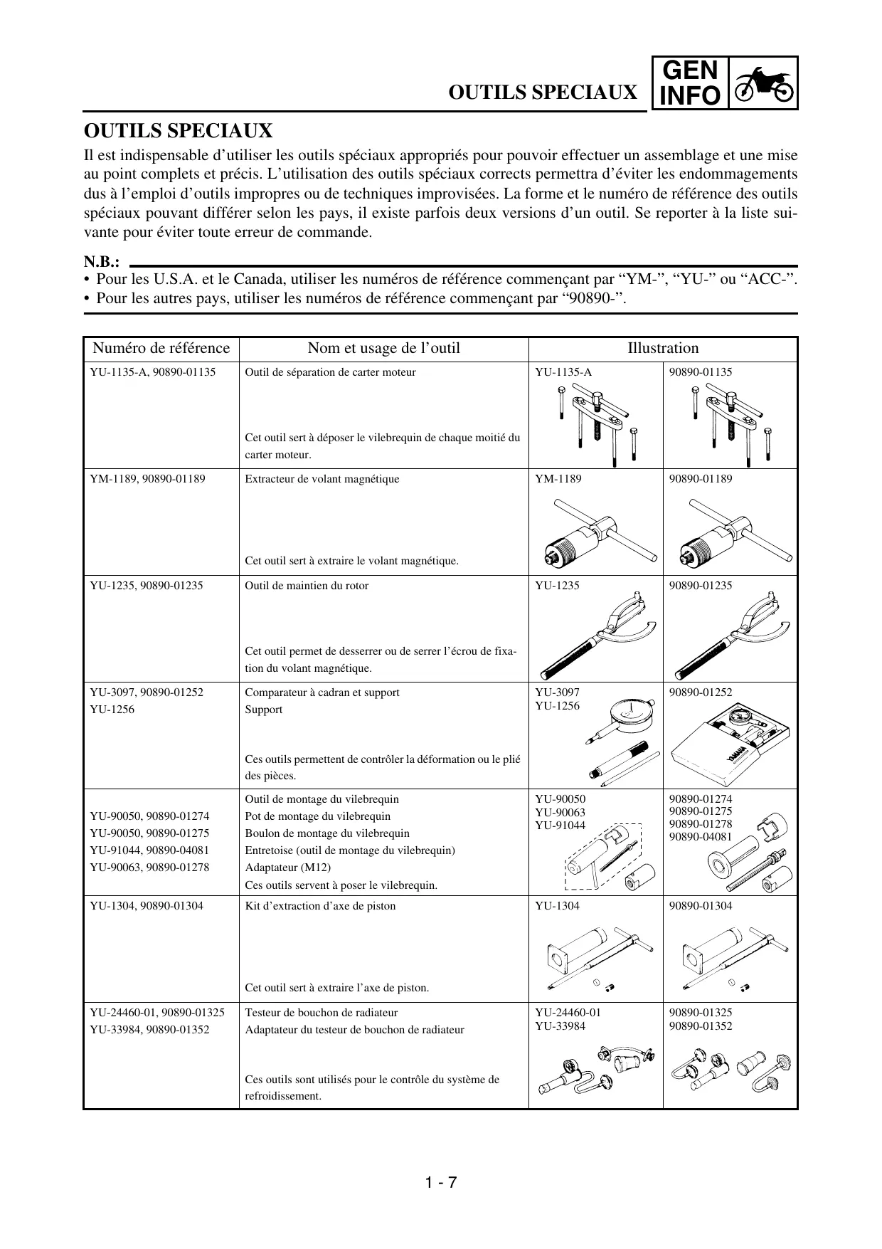 5. • Pour les autres pays, utiliser les numéros de référence commençant par “90890-”. Numéro de référence YU-1135-A, 90890-01135