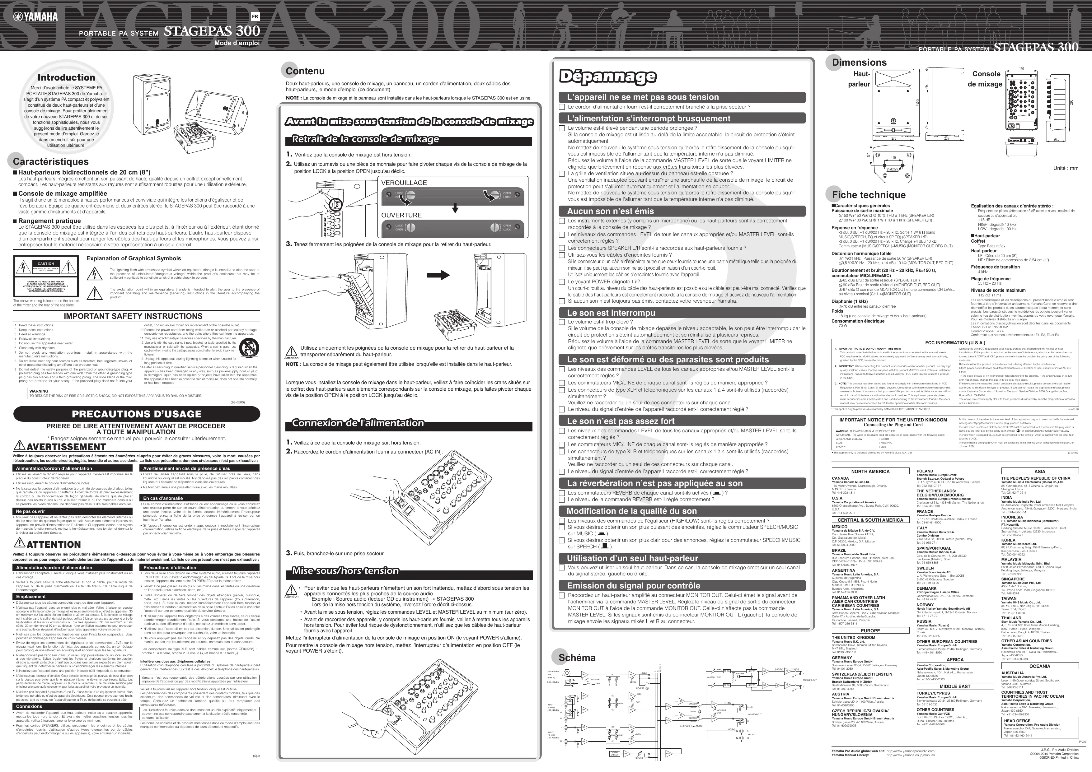 MODE D'EMPLOI STAGEPAS 300 YAMAHA
