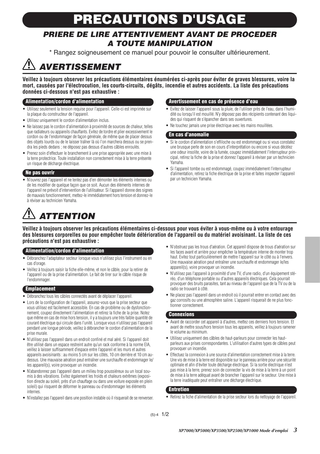 Téléchargez la notice de votre Amplificateur de puissance au format PDF gratuitement ! Retrouvez votre notice XP-7000 - YAMAHA et reprennez votre appareil électronique en main. Sur cette page sont publiés tous les documents nécessaires à l'utilisation de votre appareil XP-7000 de la marque YAMAHA.