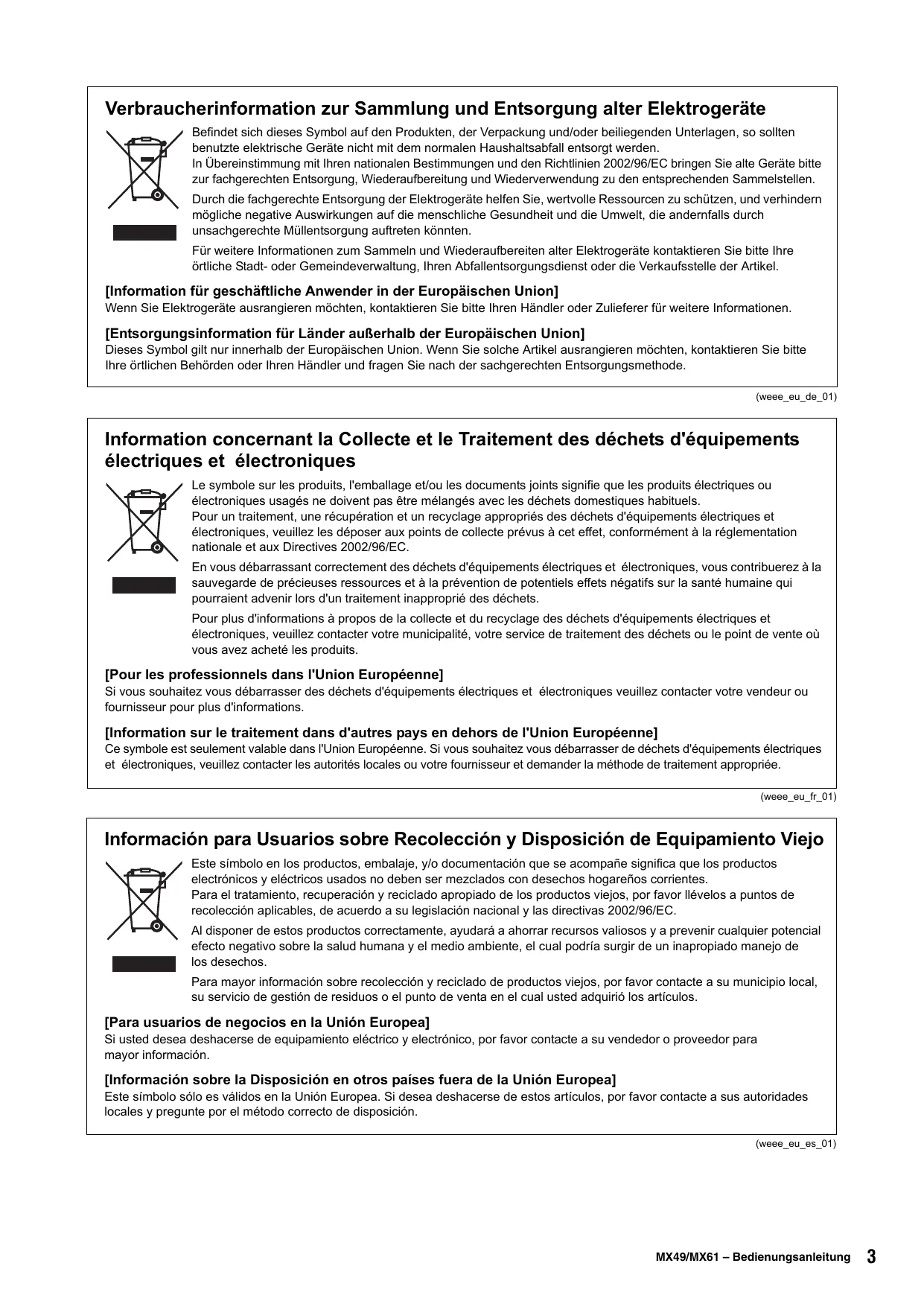 Mode d'emploi (version imprimée) Ce manuel explique les modalités de configuration et d'exécution des opérations de base du MX49/MX61. C'est le document que vous devez lire en premier lorsque vous commencez à jouer et à utiliser le MX49/MX61.