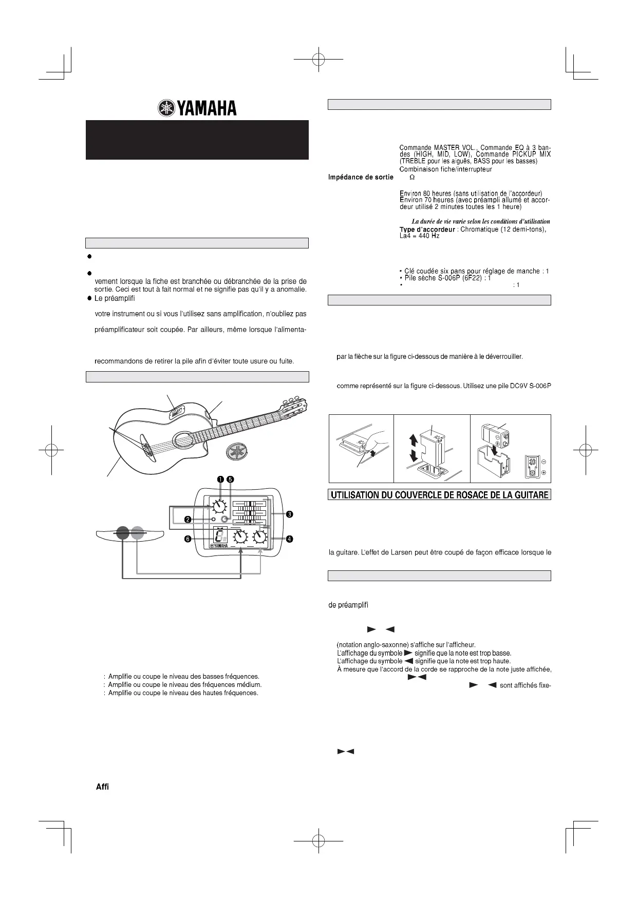 | Commandes | Master Volume, Commande EQ 3 bandes (HIGH, MID, LOW), Commande PICKUP MIX |