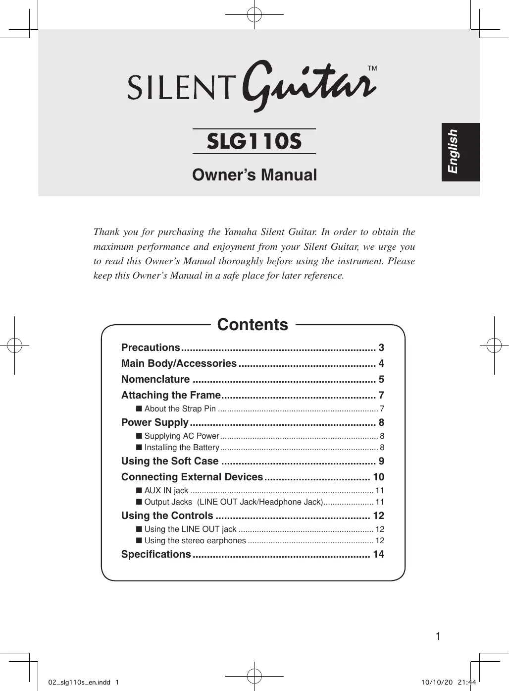 SLG110S - Guitare silencieuse YAMAHA - Notice d'utilisation et mode d'emploi gratuit