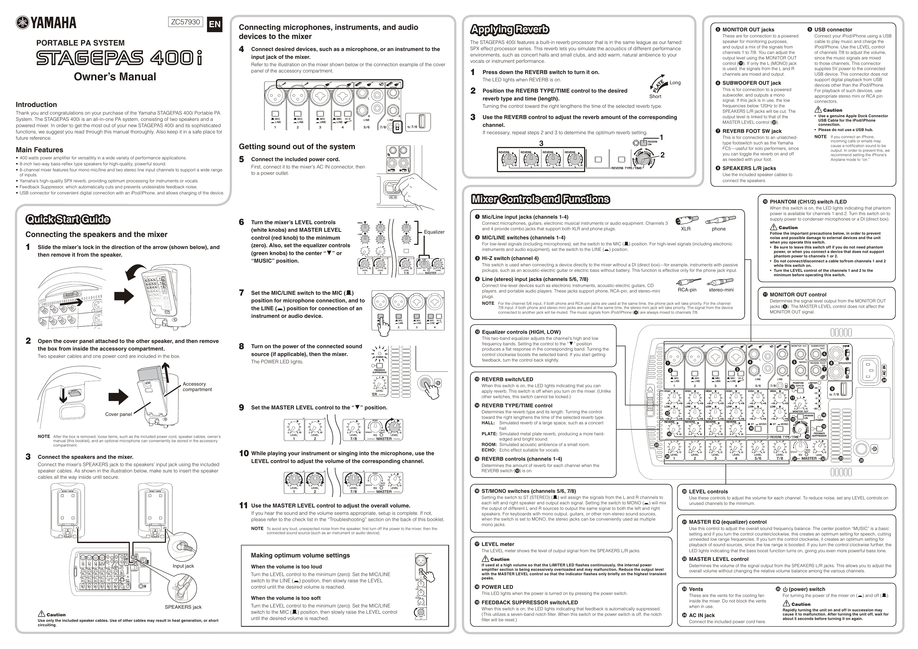 STAGEPAS 400I - Système de sonorisation portable YAMAHA - Notice d'utilisation et mode d'emploi gratuit
