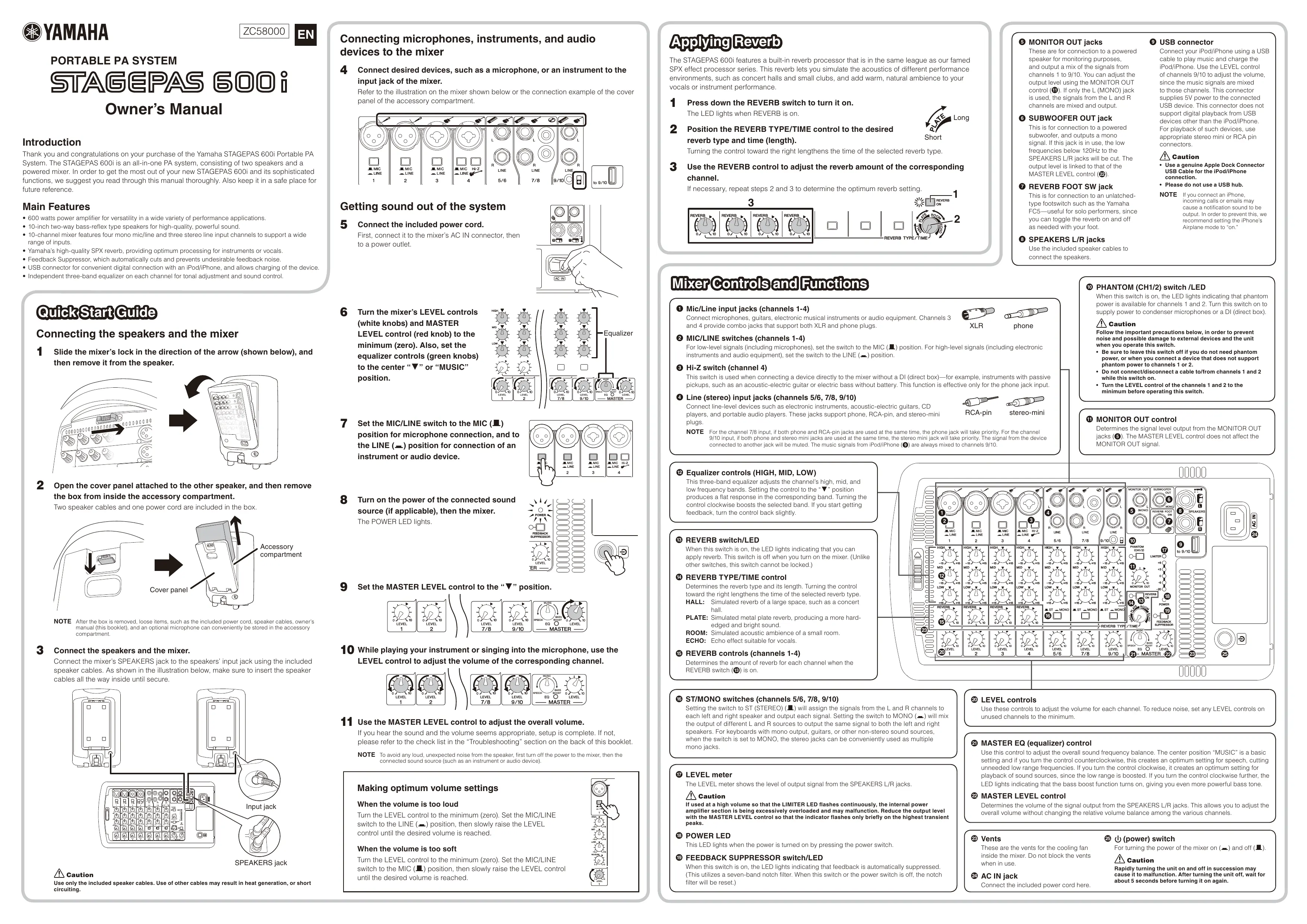 STAGEPAS 600I - Système de sonorisation portable YAMAHA - Notice d'utilisation et mode d'emploi gratuit