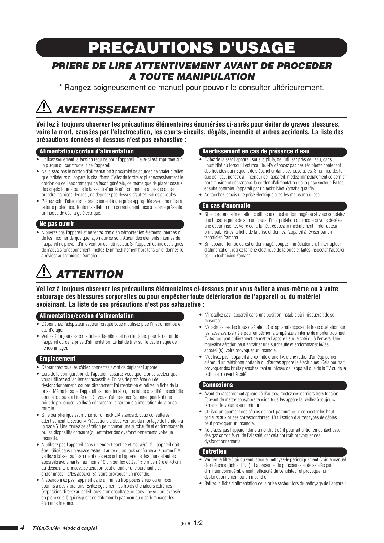 MODE D'EMPLOI TX6N/TX5N/TX4N YAMAHA