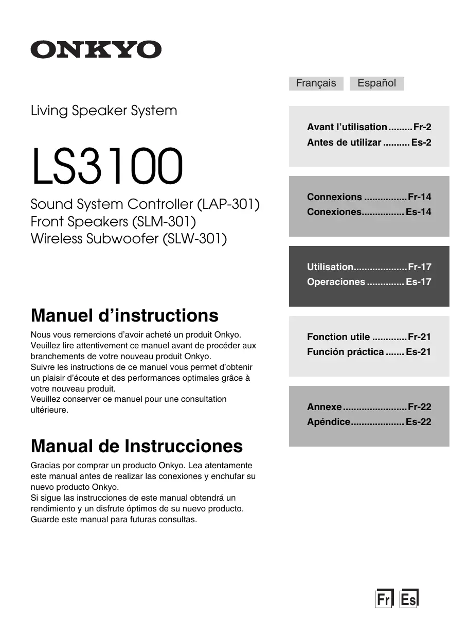 Retrouvez gratuitement la notice de l'appareil LS3100 ONKYO au format PDF.