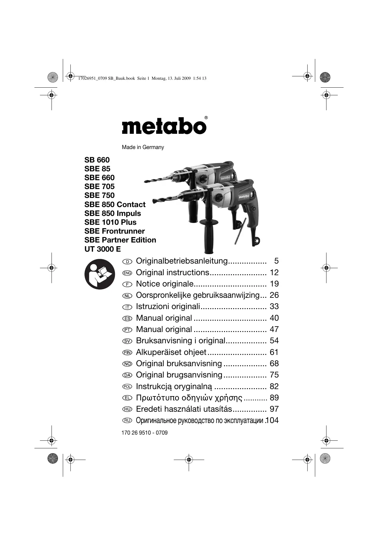 Téléchargez la notice de votre Perceuse à percussion au format PDF gratuitement ! Retrouvez votre notice SBE 850 - METABO et reprennez votre appareil électronique en main. Sur cette page sont publiés tous les documents nécessaires à l'utilisation de votre appareil SBE 850 de la marque METABO.