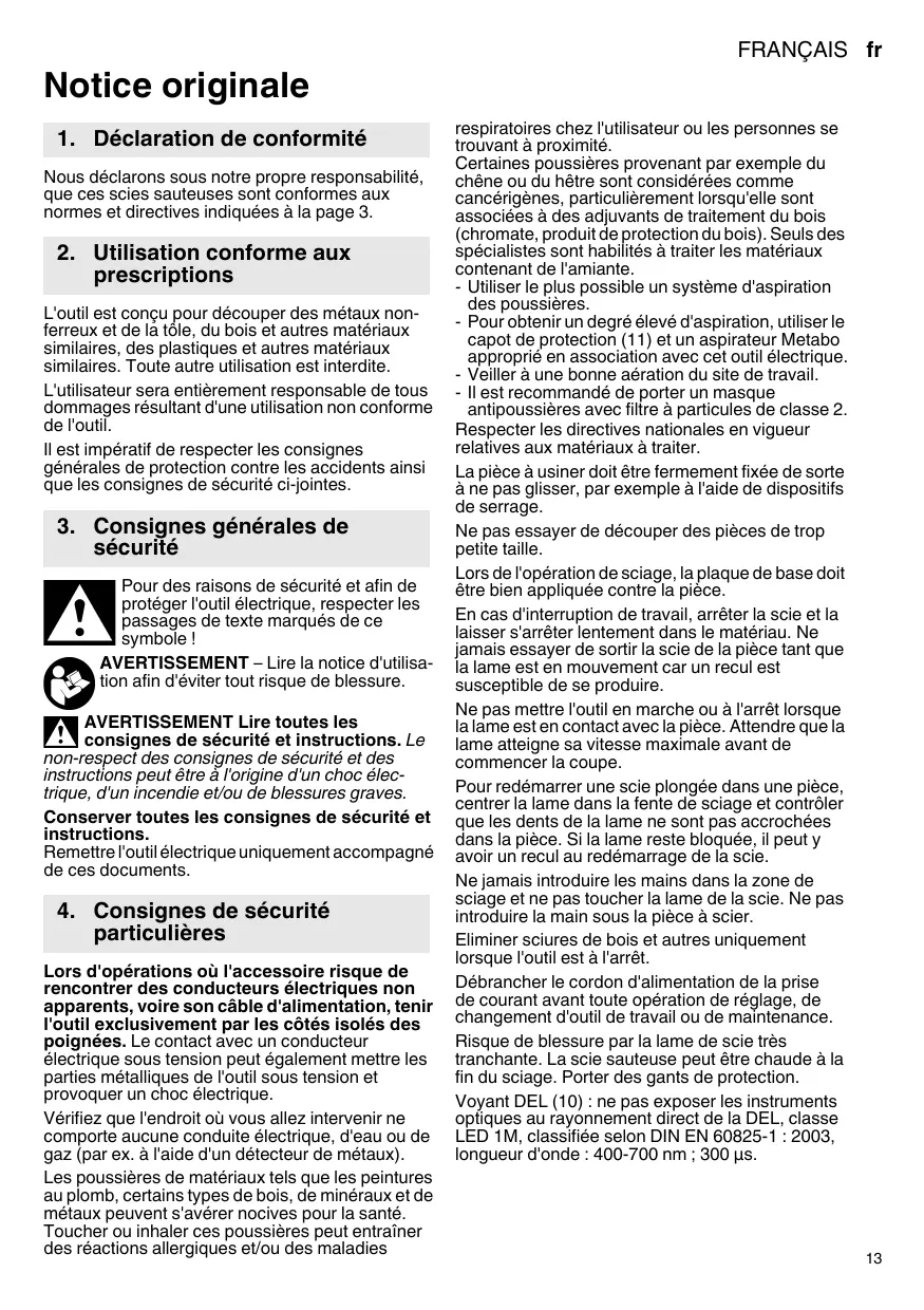 Nous déclarons sous notre propre responsabilité, que ces scies sauteuses sont conformes aux normes et directives indiquées à la page 3.