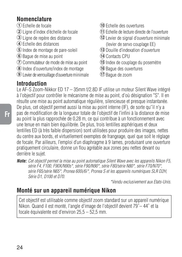 AF-S ZOOM-NIKKOR 17-35MM F-2.8D IF - Objectif photo NIKON - Notice d'utilisation et mode d'emploi gratuit