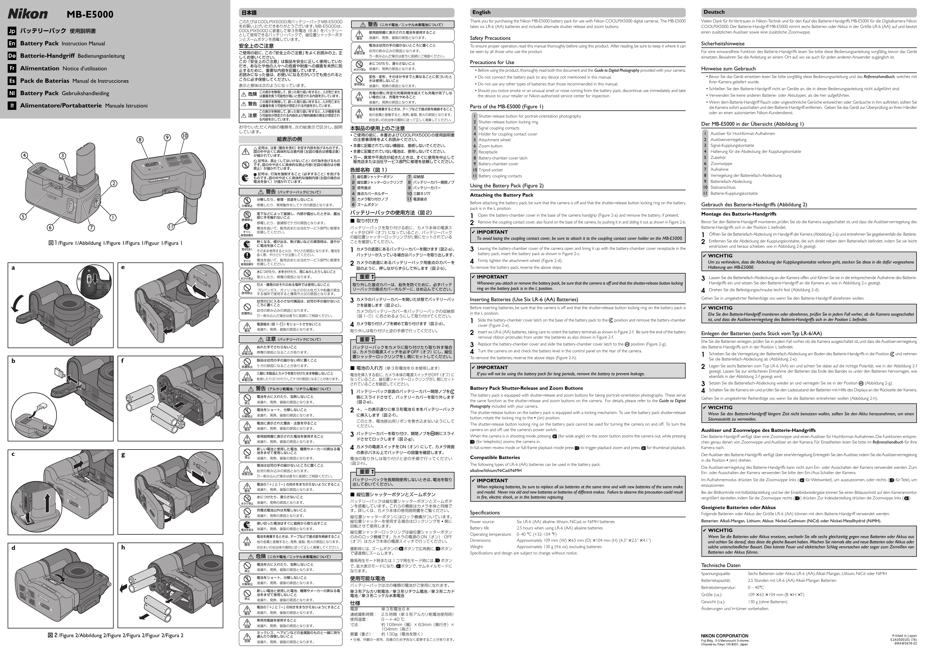 Gefeliciteerd met uw aanschaf van de Nikon MB-E5000 Battery Pack voor gebruik in combinatie met een Nikon COOLPIX5000 digitale camera. De MB-E5000 gebruikt zes LR-6 (AA) batterijen en biedt een extra ontspan- en zoomknop.