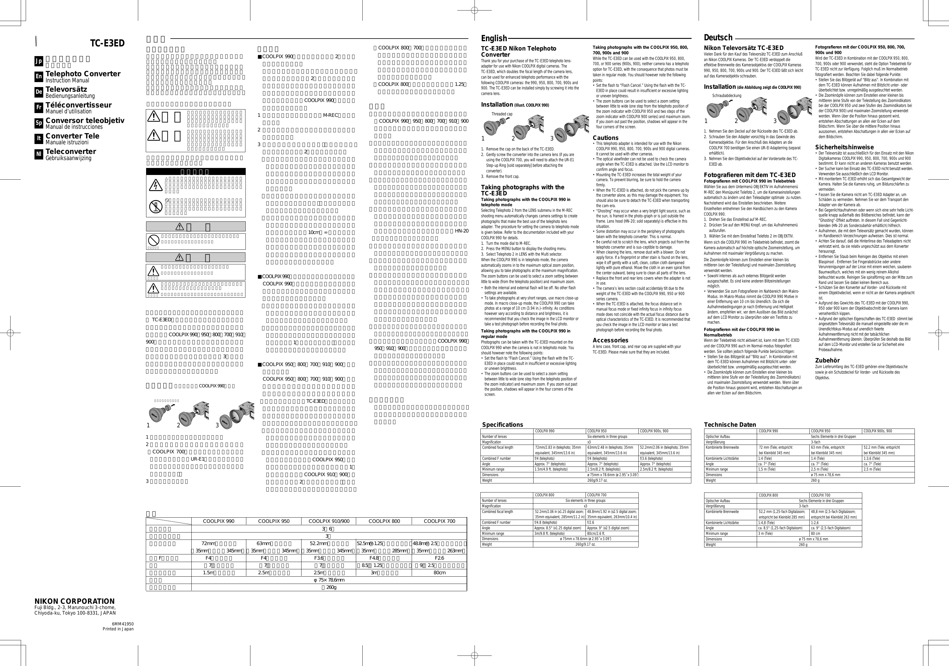 MODE D'EMPLOI TC-E3ED NIKON