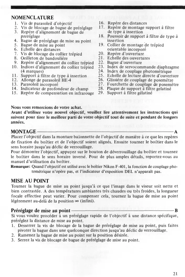 Nous vous remercions de votre achat. Avant d'utiliser votre nouvel objectif, veuillez lire attentivement les instructions qui suivent pour tirer le meilleur parti de votre objectif tout de suite et pendant de longues annees. MONTAGE