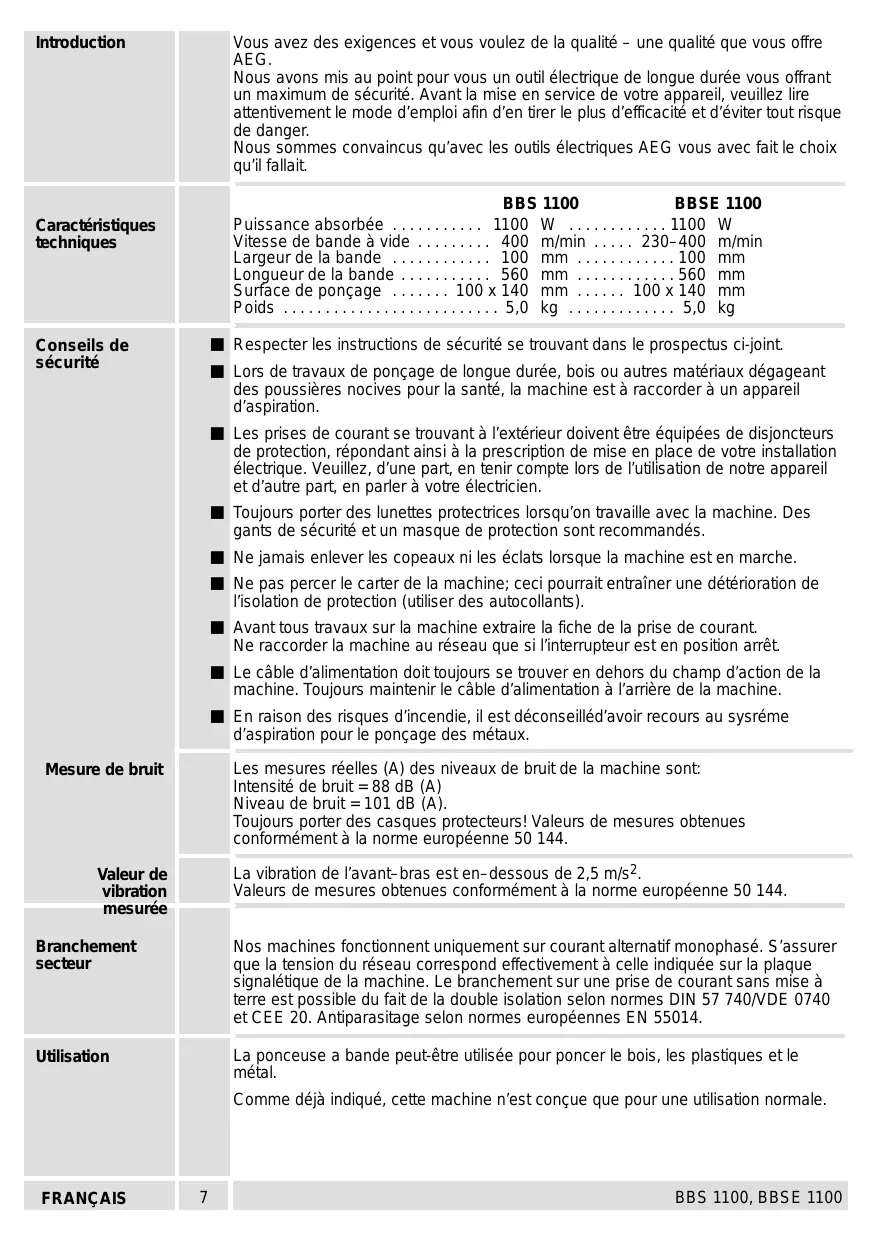 BBSE 1100 - Ponceuse électrique AEG-ELECTROLUX - Notice d'utilisation et mode d'emploi gratuit