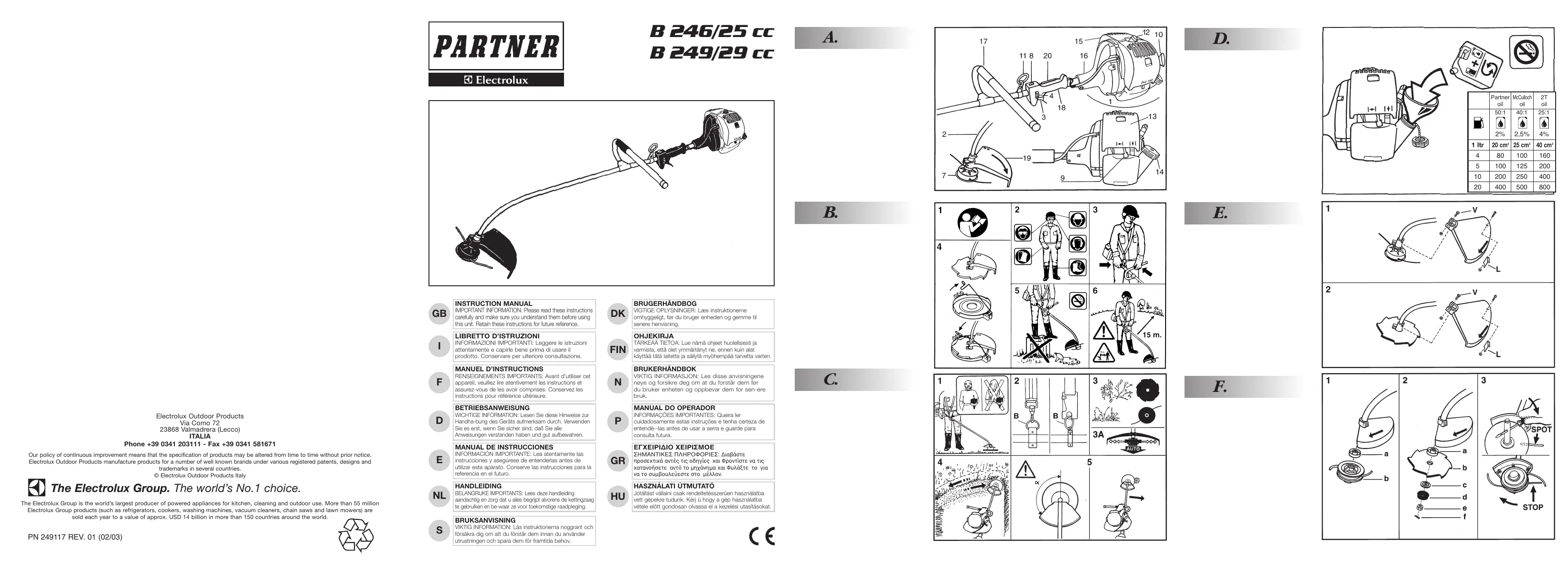PARTNER B 249 29CC - Débroussailleuse thermique AEG-ELECTROLUX - Notice d'utilisation et mode d'emploi gratuit