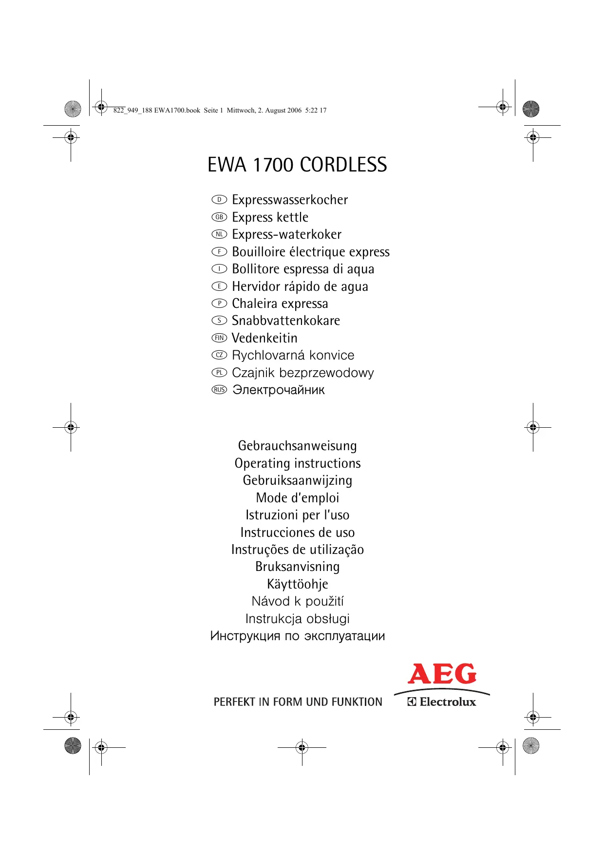 Retrouvez gratuitement la notice de l'appareil EWA1700 AEG-ELECTROLUX au format PDF.