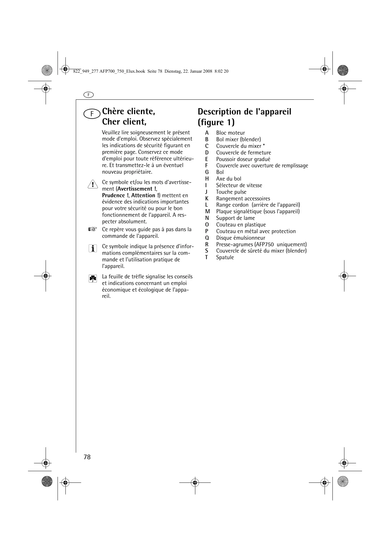 MODE D'EMPLOI AFP700 AEG-ELECTROLUX