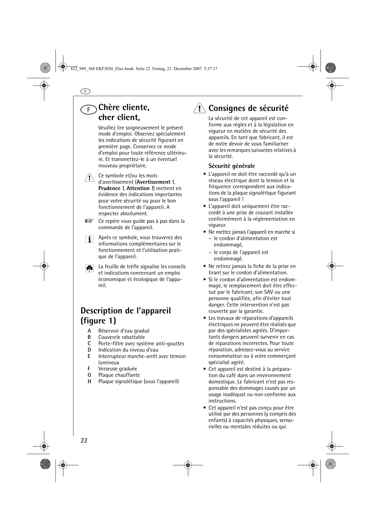 Retrouvez gratuitement la notice de l'appareil EKF3030 AEG-ELECTROLUX au format PDF.