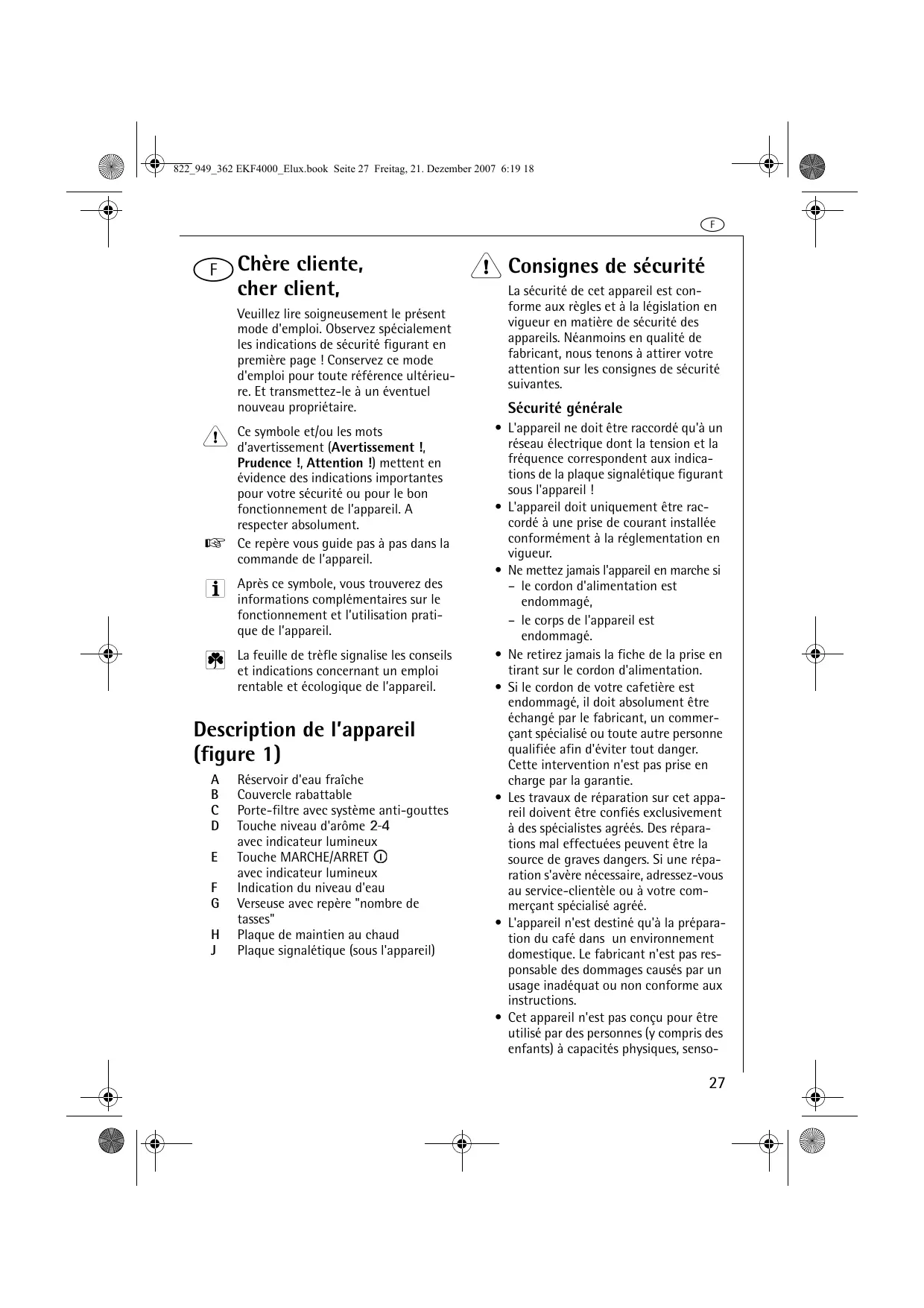 MODE D'EMPLOI EKF4000 AEG-ELECTROLUX