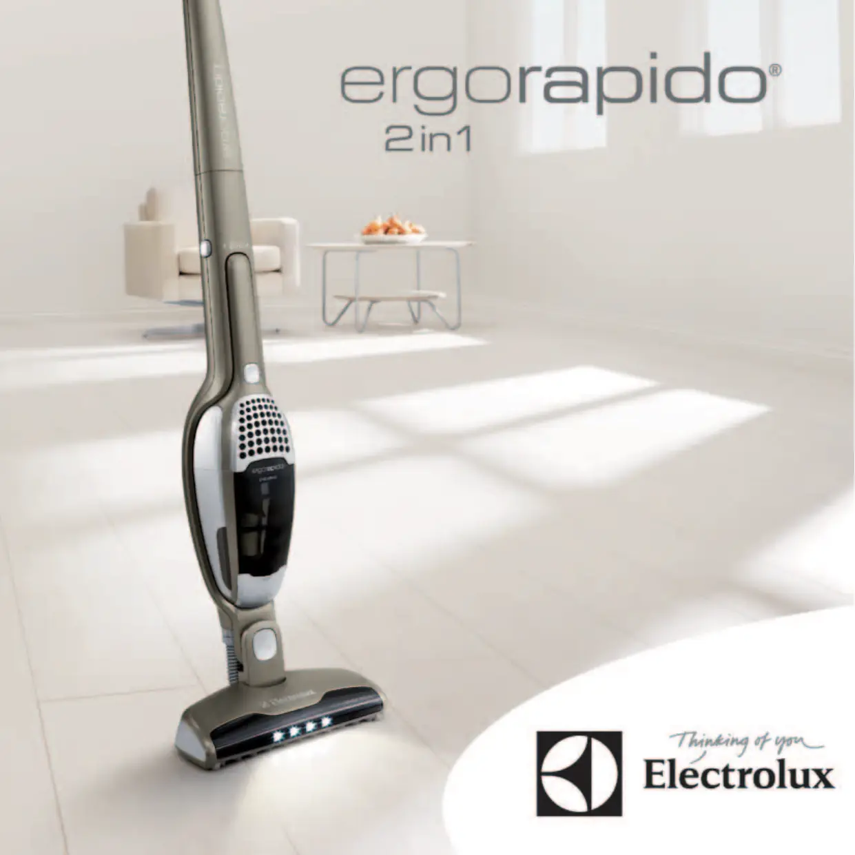 Merci d'avoir choisi un aspirateur Electrolux Ergorapido. Ergorapido est un aspirateur balai rechargeable adapté aux poussières domestiques légères sèches. Pour des résultats optimaux, utilisez toujours des accessoires Electrolux. Ils ont été conçus tout spécialement pour votre aspirateur.